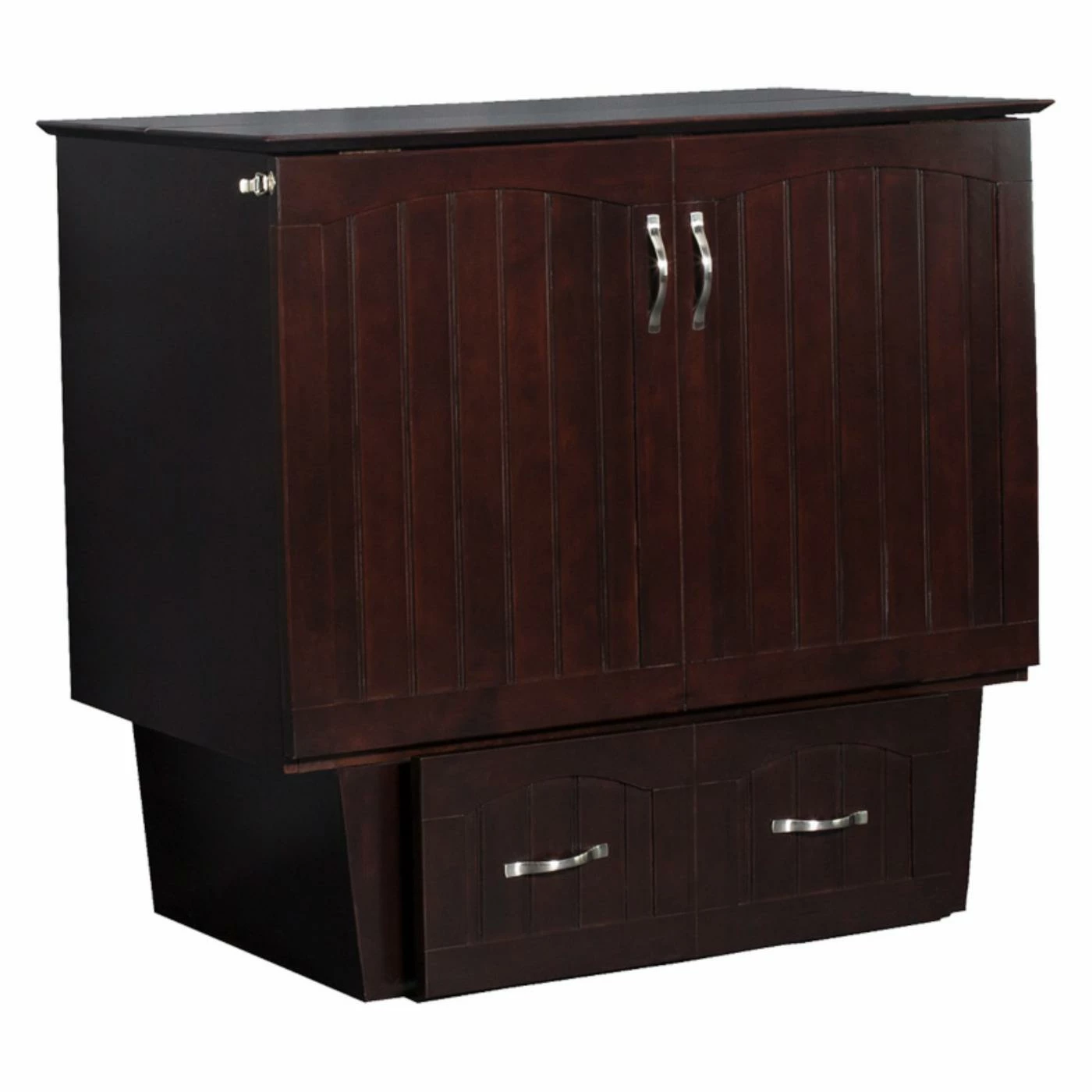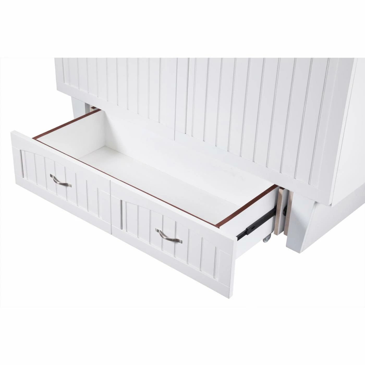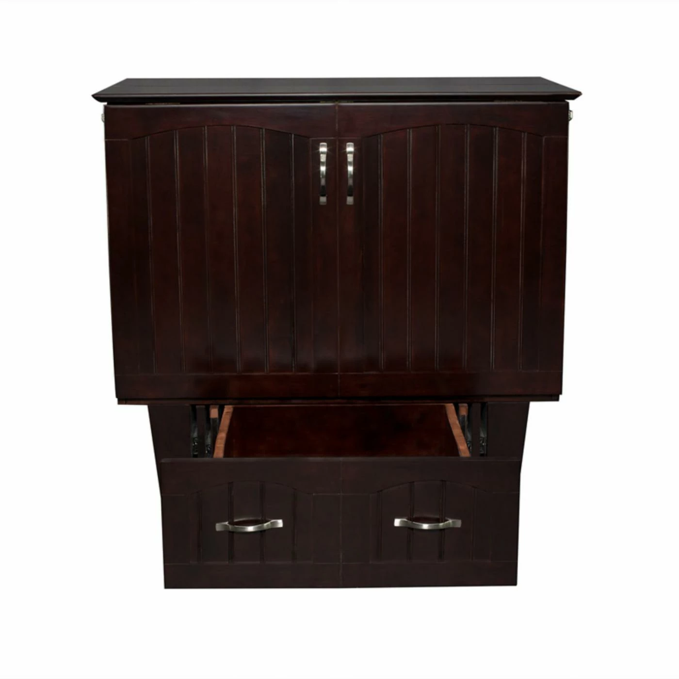 The ultra-functional Nantucket Murphy Bed Chest with Charging Station & Cool Soft Mattress is a two-in-one stunner perfect for any cramped bedroom space. What looks like a luxurious compact chest opens up to reveal a bed with fold-out mechanism. Pull handles on the mattress make it easy to open and close. One extra-large drawer stores all your essentials, while satin-finish hardware adds a touch of sophistication. Perfect for studio apartments or accommodating guests in a room that is smaller than the ideal size. There’s also a built-in charging station for your electronics. Choose from available finish options.