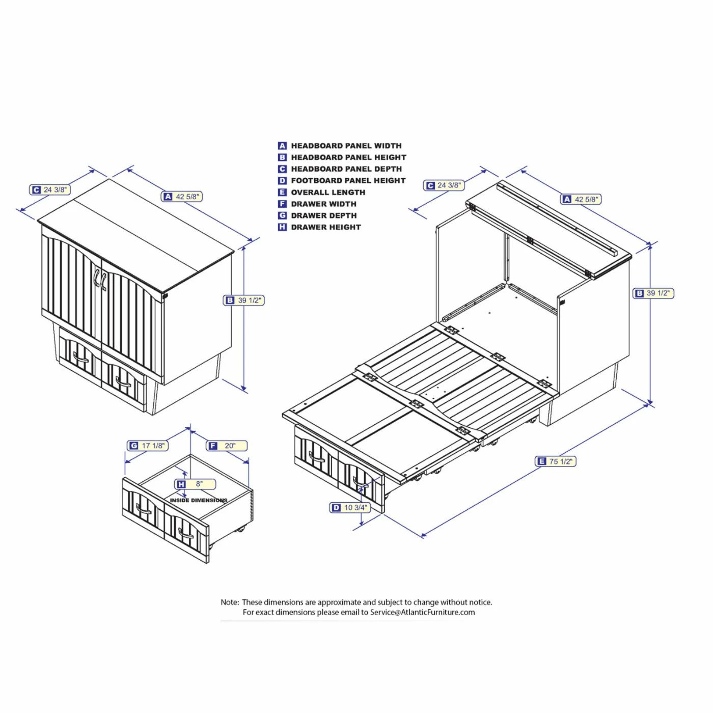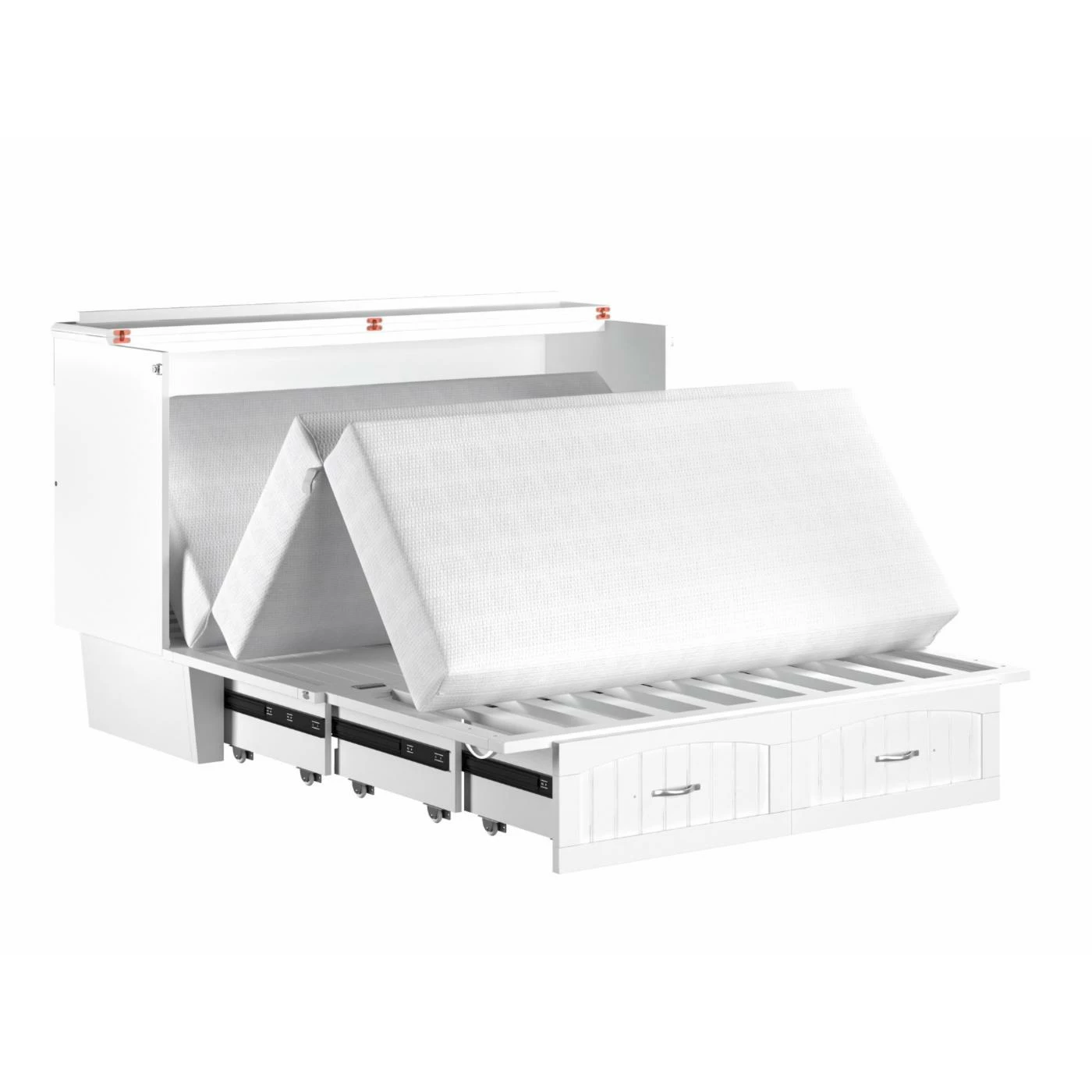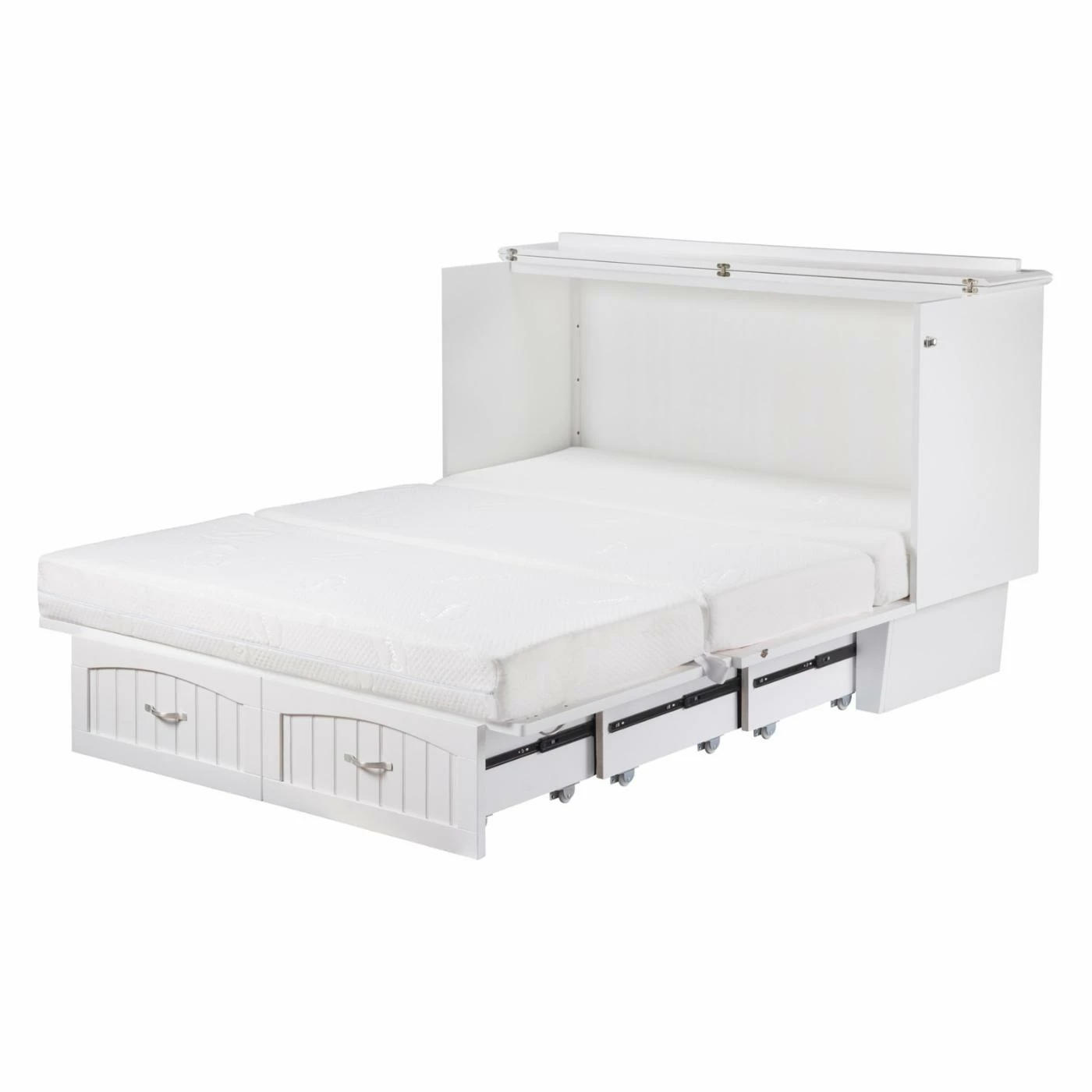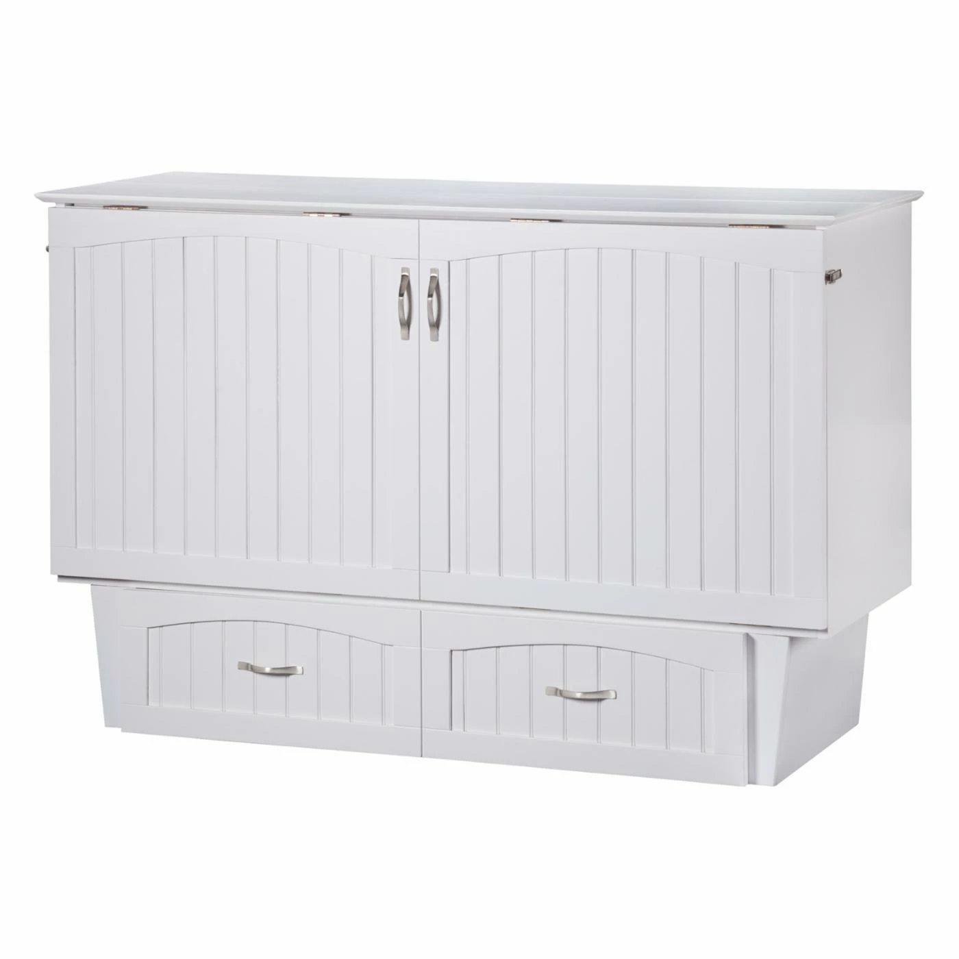 The ultra-functional Nantucket Murphy Bed Chest with Charging Station & Cool Soft Mattress is a two-in-one stunner perfect for any cramped bedroom space. What looks like a luxurious compact chest opens up to reveal a bed with fold-out mechanism. Pull handles on the mattress make it easy to open and close. One extra-large drawer stores all your essentials, while satin-finish hardware adds a touch of sophistication. Perfect for studio apartments or accommodating guests in a room that is smaller than the ideal size. There’s also a built-in charging station for your electronics. Choose from available finish options.