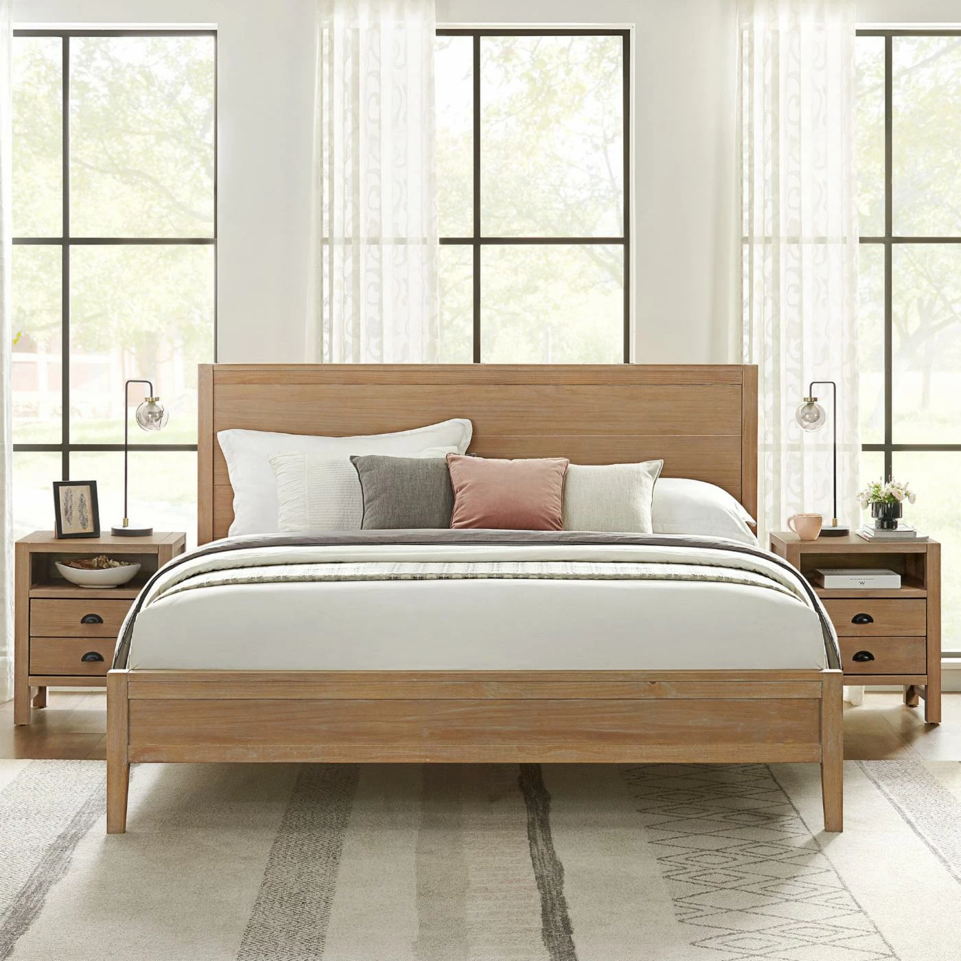 Simple yet striking, this bedroom collection transforms your space into an inviting haven. The centerpiece of your restful retreat, this bed is the perfect spot to curl up at the end of the day. The versatile style complements a wide array of styles ranging from modern rustic to a boho retreat. Made of solid pine wood. These pieces are well constructed, durable, and will last for years to come. The light driftwood finish highlights tonal variations, grain and marks that are unique to each piece. Each bed includes slats so there is no box spring required. Incorporated with a high profile headboard and low profile footboard, it will be a perfect addition to your restful retreat. Assembly required.