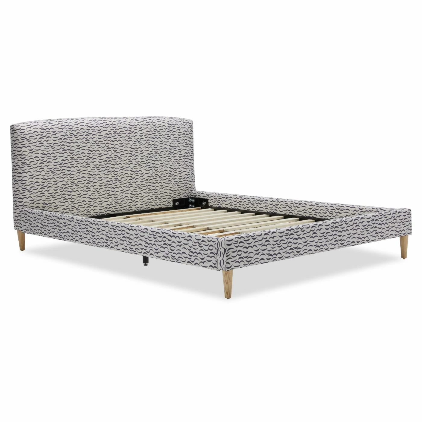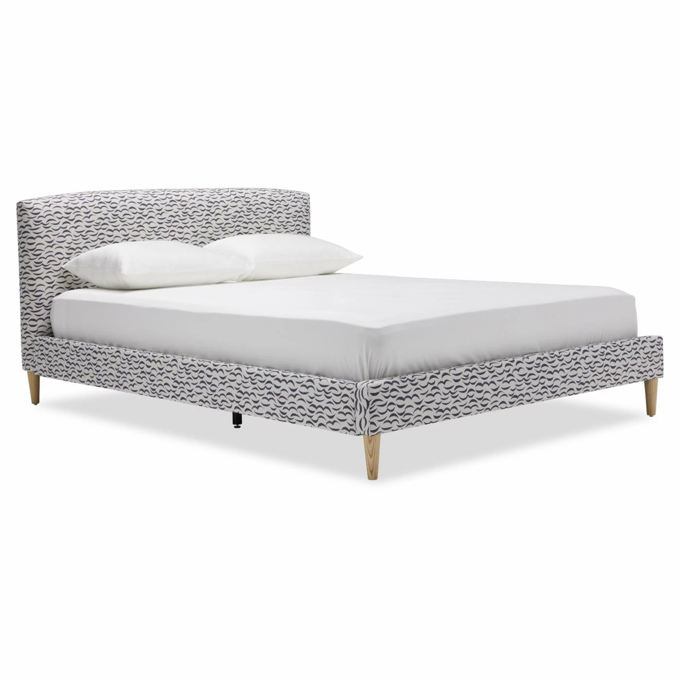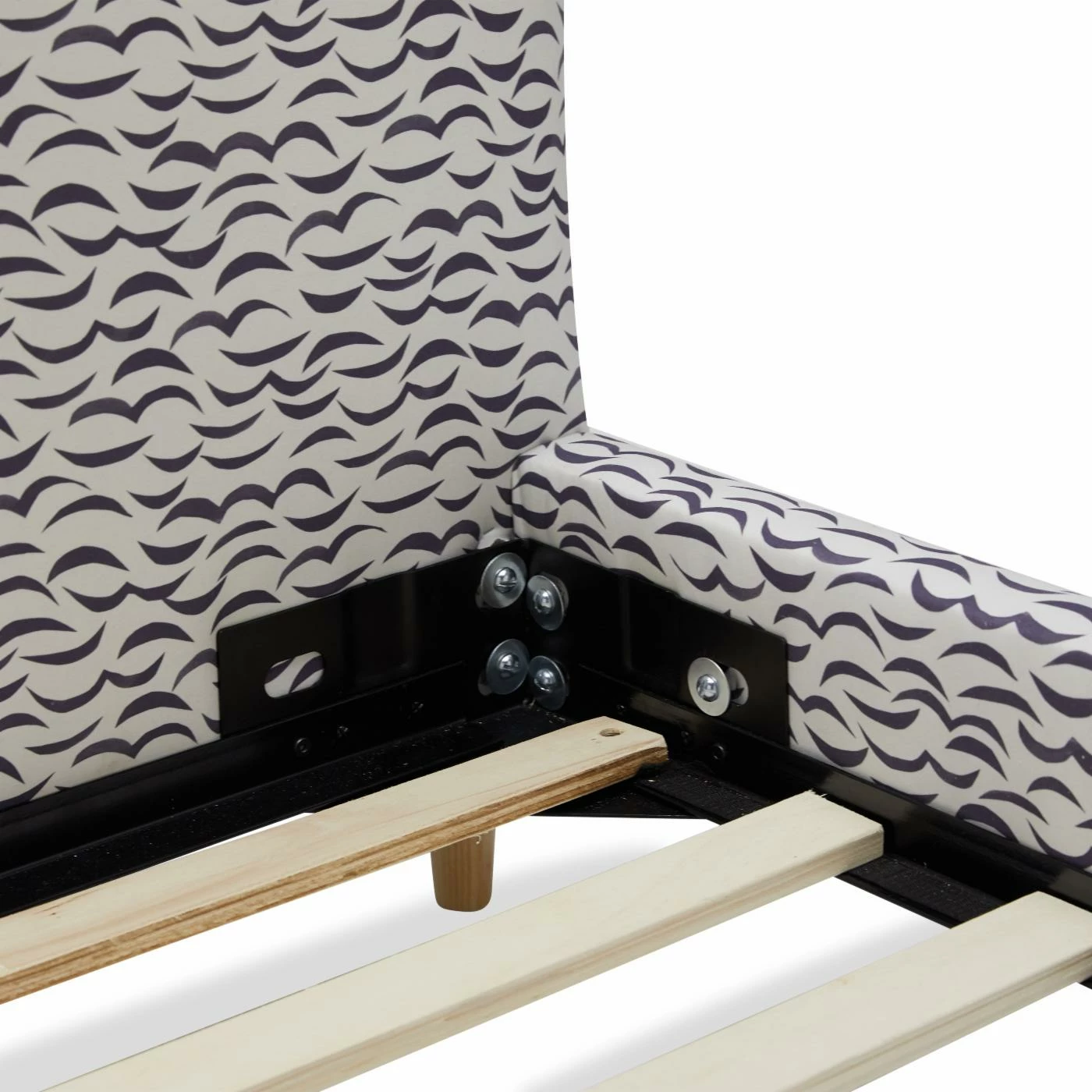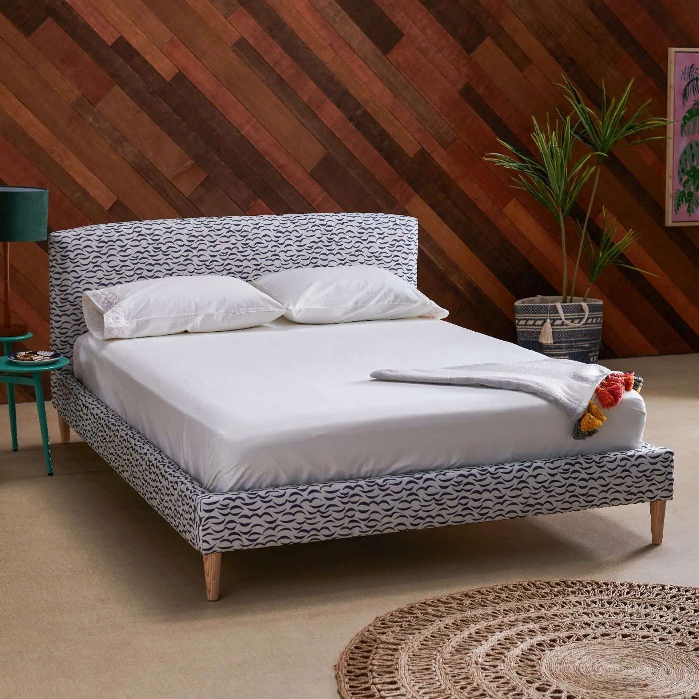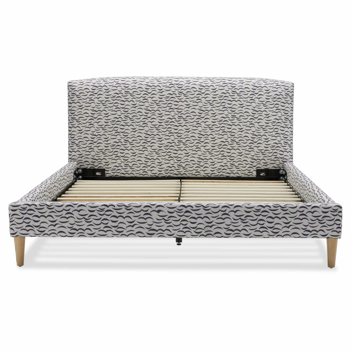 Modern eclectic style comes naturally to the Crescent Moon Upholstered Platform Bed by Drew Barrymore Flower Home, setting it up for room-defining glory. It’s padded for comfort and topped in a soft linen and cotton blend upholstery. An exclusive Crescent Moon print in crisp blue and white hues is becomingly complemented by the mod pine wood legs. This platform bed is outfitted with a wood slat support system, eliminating the need for a box spring. Style it with the pillow and bedding pieces found from Drew Barrymore Flower Home for a dream of a bedroom. Choose from the available size options.