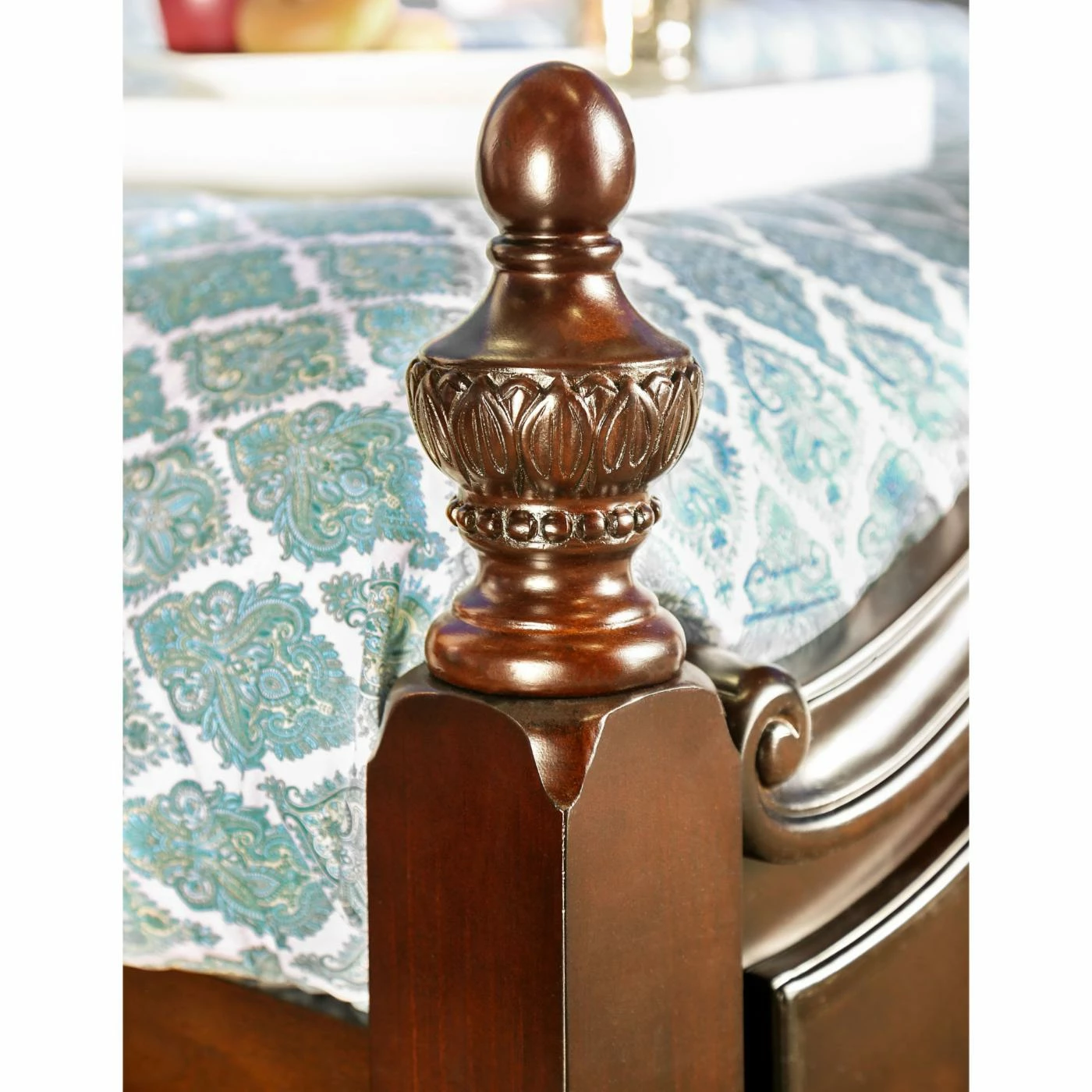 Opulent details and traditional grace make the Grand Central Poster Bed – Cherry a sure way to upgrade your master suite. This bed is built heirloom-quality from solid wood and veneers in a luxe brown cherry finish. Its sweeping headboard and footboard are detailed with intricately carved floral accents.