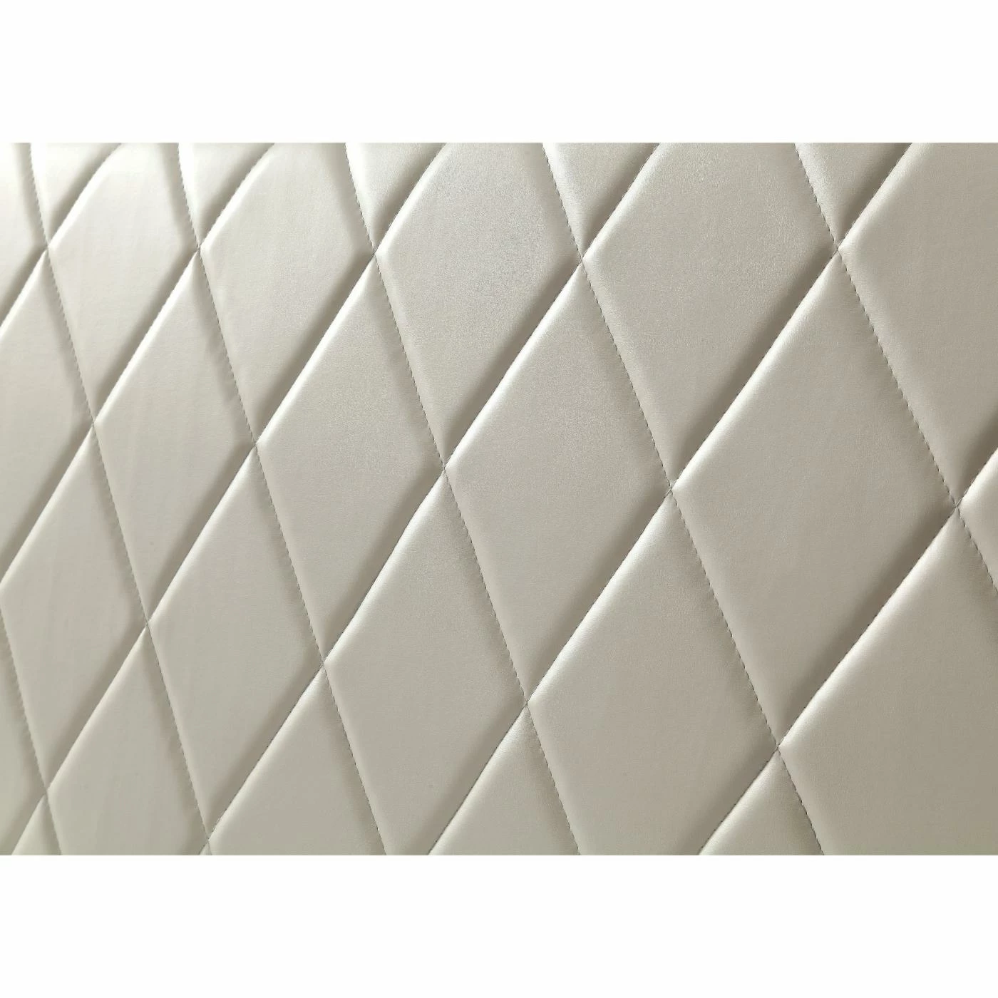 - High profile leatherette cross-back headboard