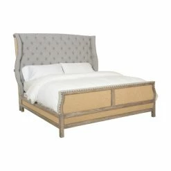 You’ve settled into your first house, now let the Hooker Furniture Boheme Bon Vivant Upholstered Wingback Panel Bed make it feel more like your first home. This panel bed has an effortless elegance that never gets too fancy. The tall, wide headboard has shapely curved wingback-style sides and is layered with dense foam. Premium gray linen upholsters the headboard with a diamond-tufted surface. Solid poplar hardwood constructs the frame, topped by an antique milk-white finish. Choose among available size options.