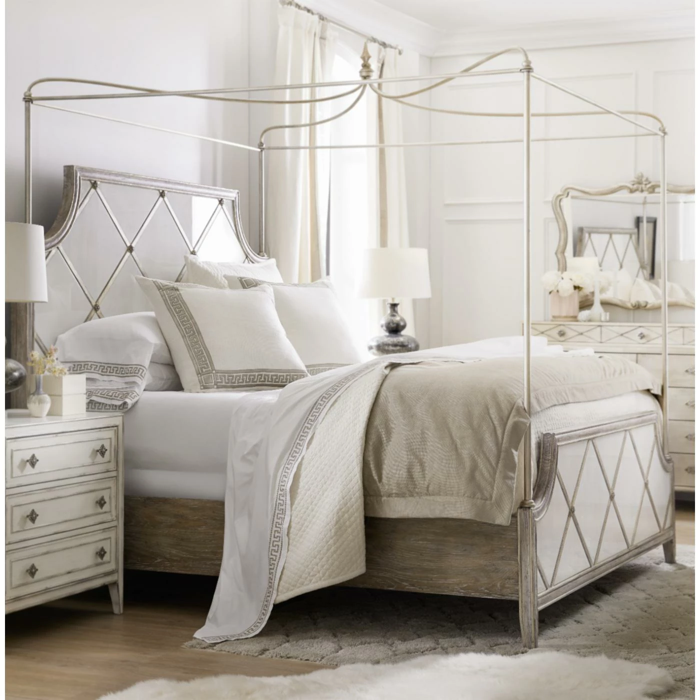 - Includes headboard, footboard canopy and rails