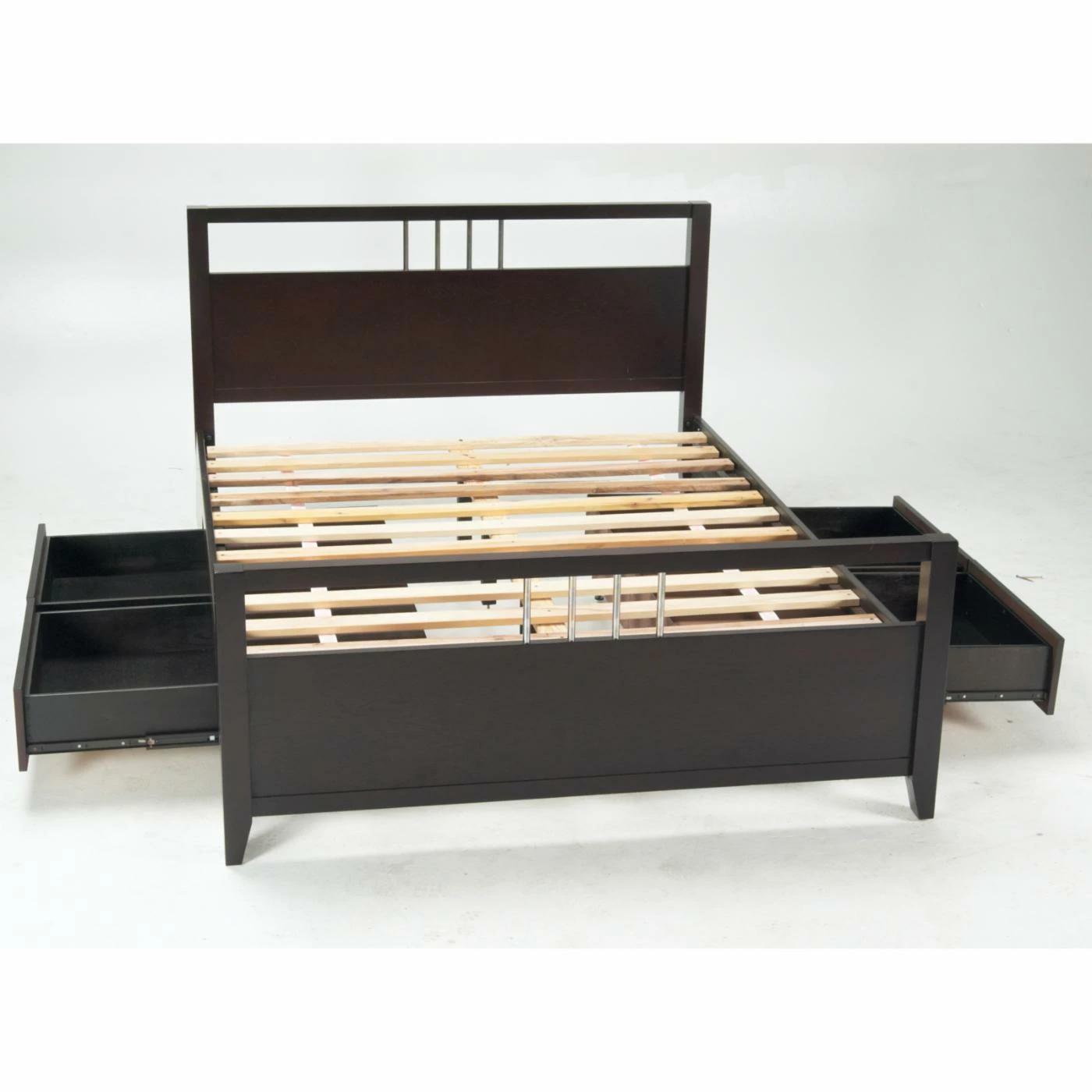 - Open headboard and footboard with decorative slats