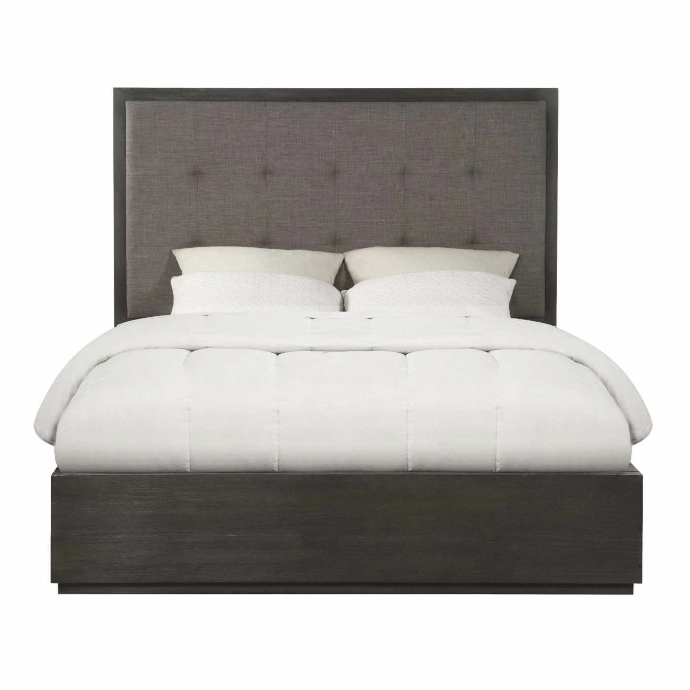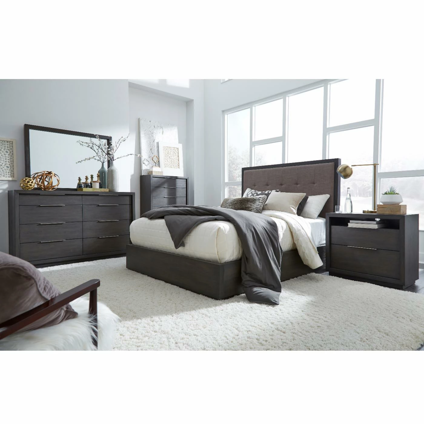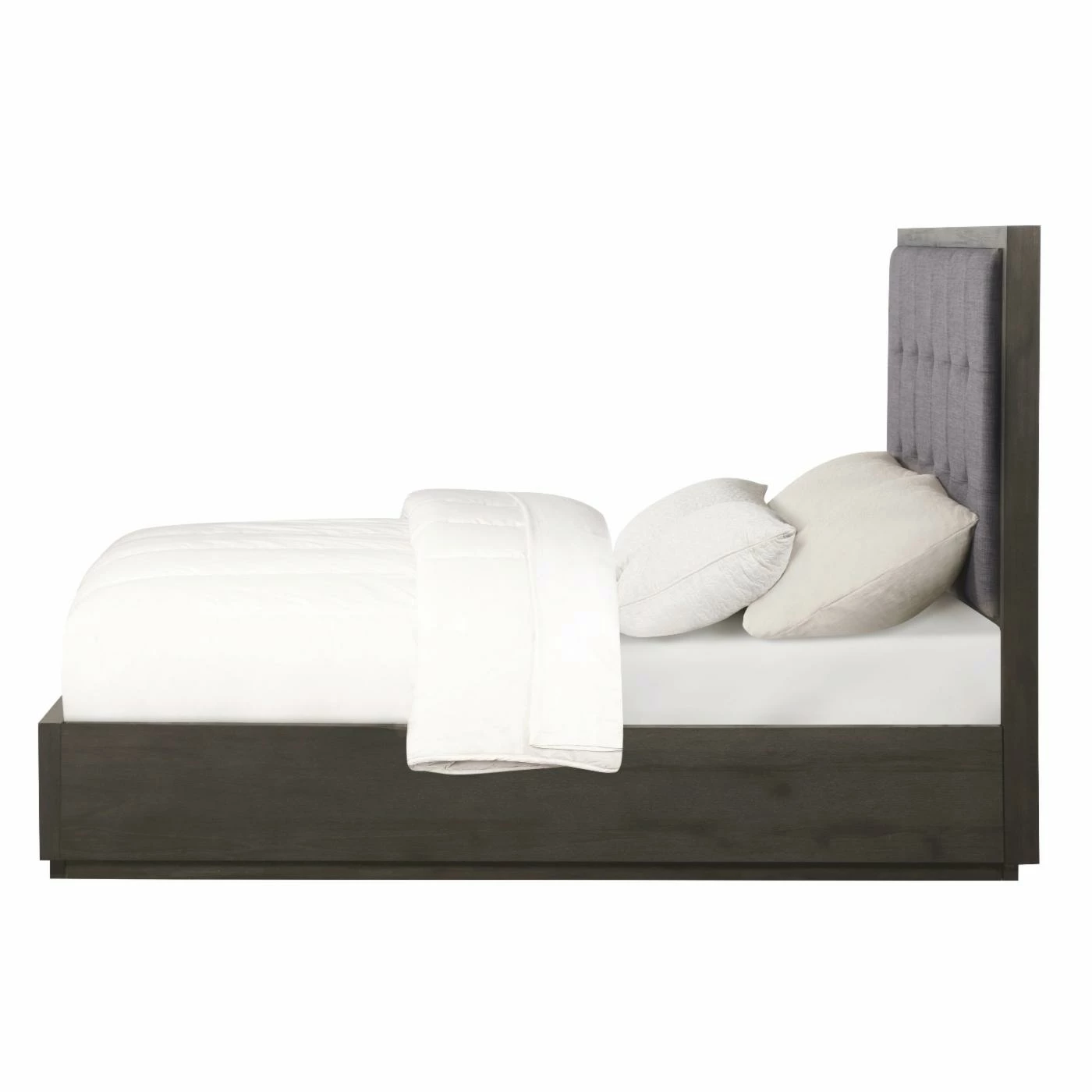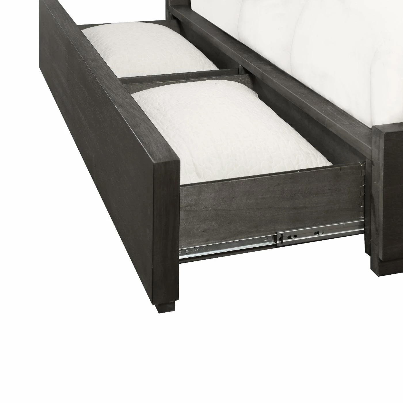 Convenient storage, modern lines, and rustic warmth all come together as the Modus Oxford Storage Platform Bed. The weathered gray finish of acacia wood and veneers complements the gray fabric upholstery on the headboard. Button tufting in the fabric adds a little soft texture. Find concealed storage in the footboard for keeping extra bedding or additional pillows. Choose from available sizes to fit your room.
