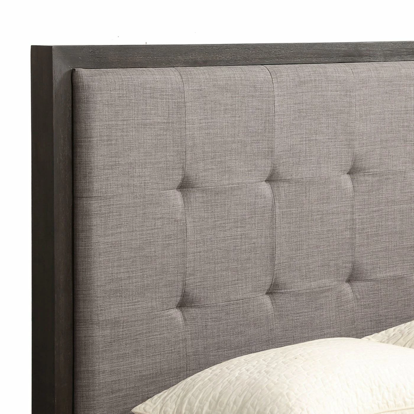 - Button-tufted headboard panel in yarn-dyed gray linen, 100% polyester