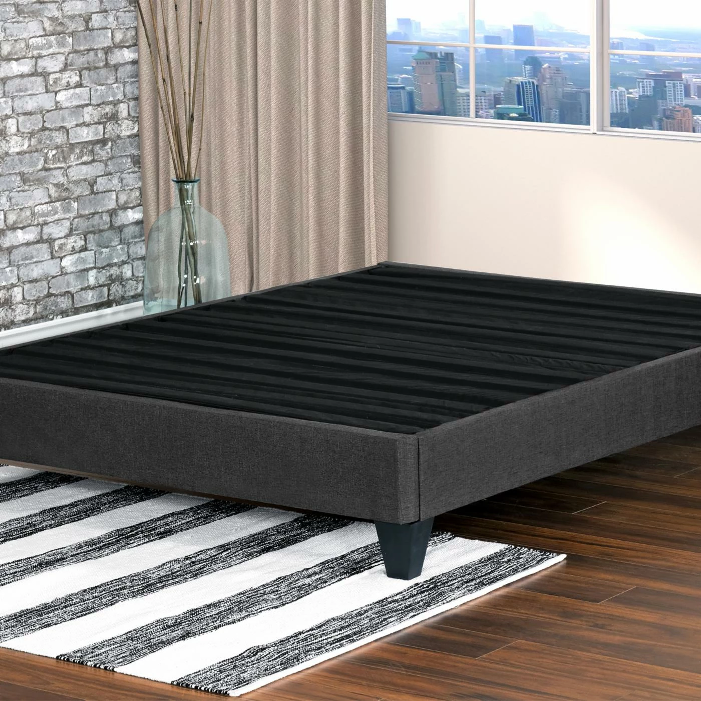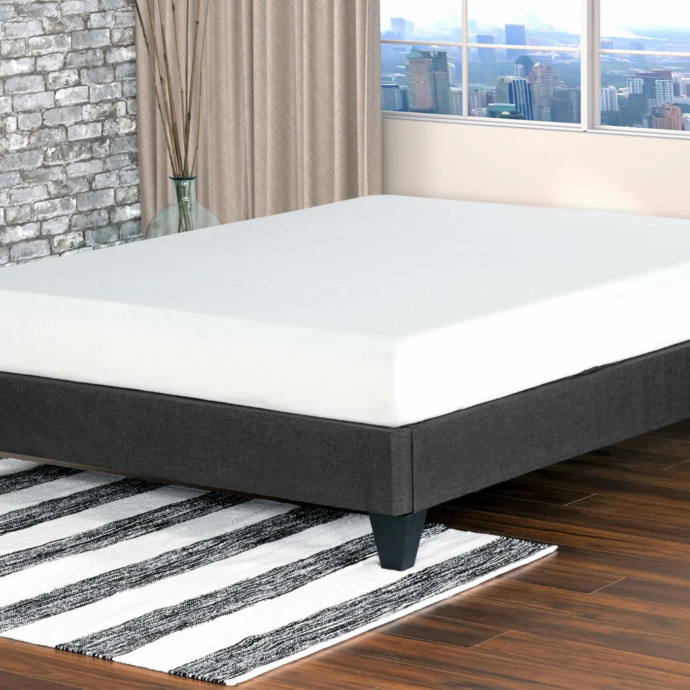 The sleek and sophisticated Primo International Speedy Base 2 Upholstered Platform Bed is the ideal choice for creating a streamlined look in your bedroom. This cleanly designed hardwood platform bed features a slat-style base that supports your mattress, all while sitting atop sturdy block legs that elevate your bed. The simple design has padded gray tweed upholstery and clean lines for a chic silhouette that is sure to enhance your room’s contemporary dΓ©cor.
