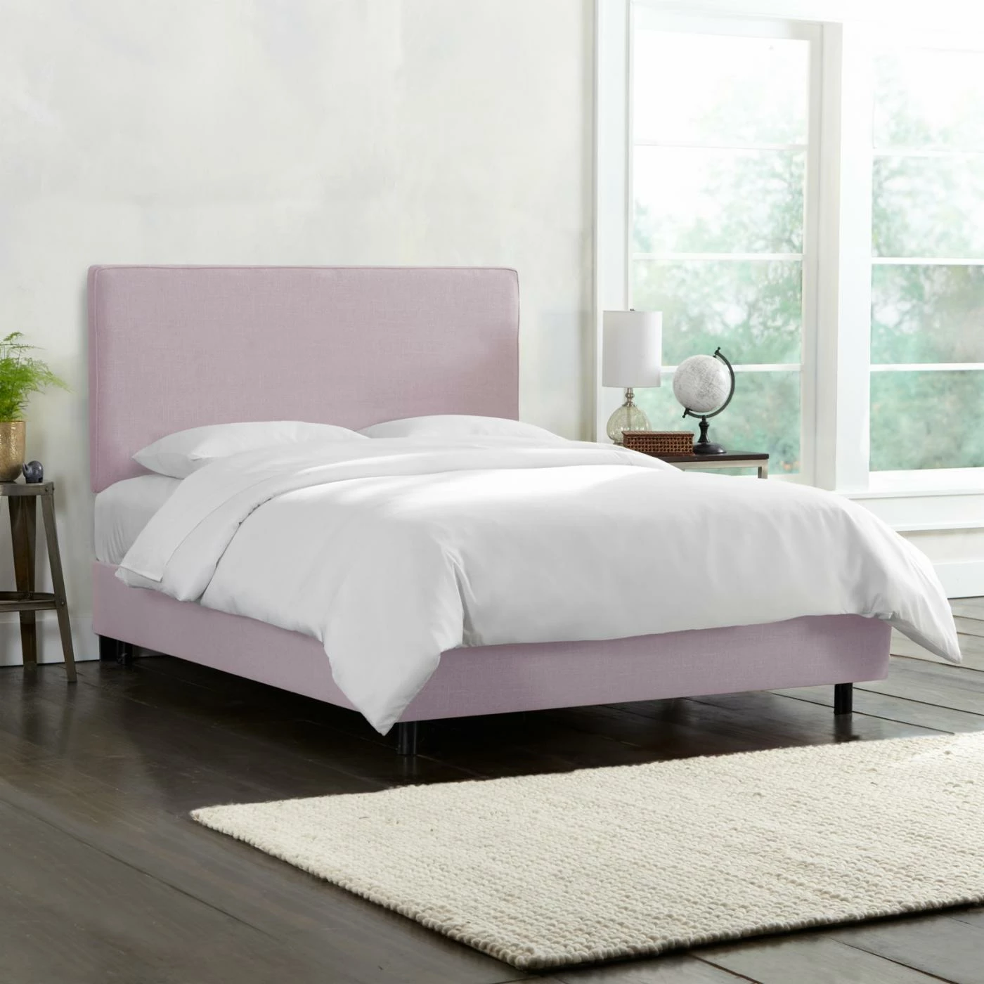 Simplicity equals sophistication when you add a Skyline Furniture Linen Seam Upholstered Low Profile Bed to your bedroom decor. This low-profile bed boasts a restrained elegance in its plush padded upholstered headboard and rails. Its clean, modern bed pops in your choice of available color options, while decorative piping establishes a contemporary feel. The handcrafted pine wood frame ensures a quality construction that will last you for years.