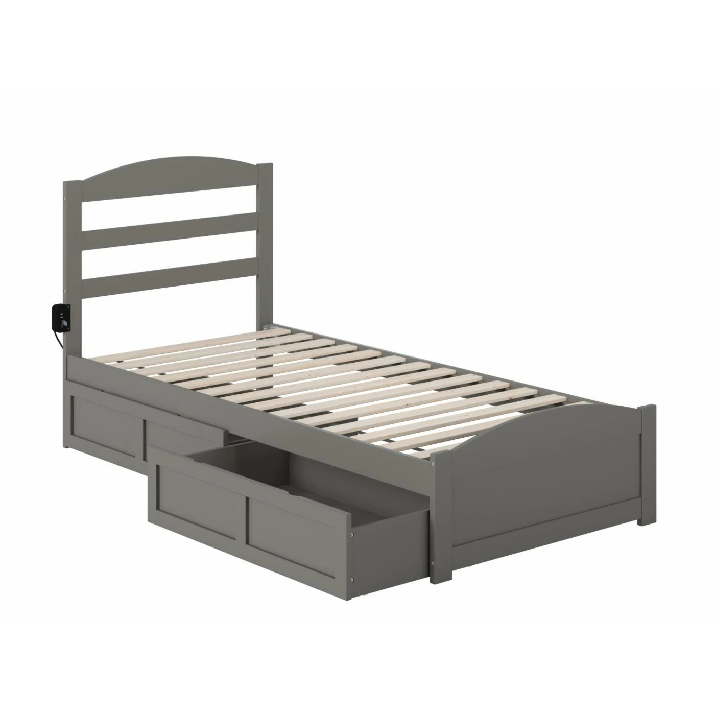 - Mattress supported by slat kit; no foundation required