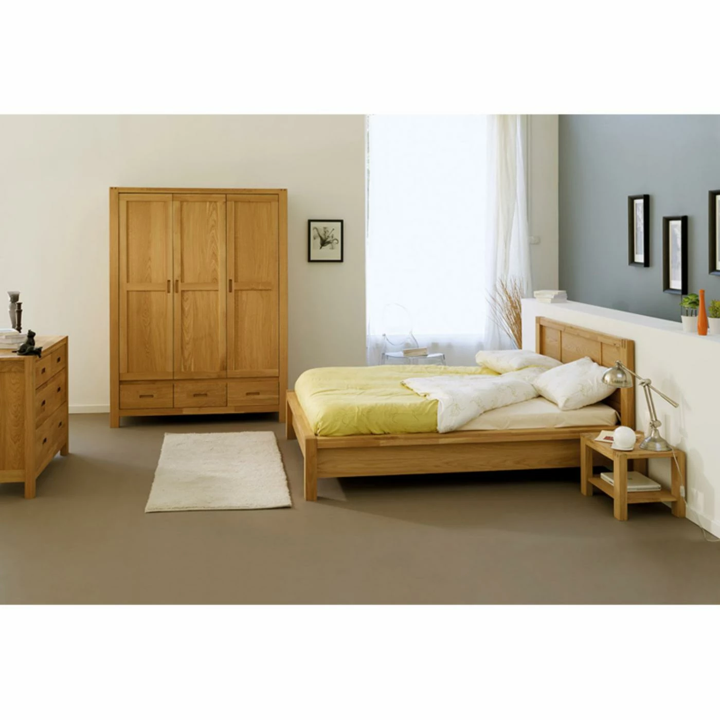 The ArteMob Ethan Solid French Oak Platform Bed offers you an elegant solution to the problem of the perfect modern bedroom centerpiece. Its classic profile is simple, yet charming, its sharp lines contrasted by a warm, natural wood color that suits any manner of designs. The frame is built from sturdy oak hardwood with a natural, oiled finish. The platform design means you needn’t worry about using a box spring. A quaint paneled border gives the rectangular headboard an extra dash of intrigue that keeps the look from appearing too pedestrian.