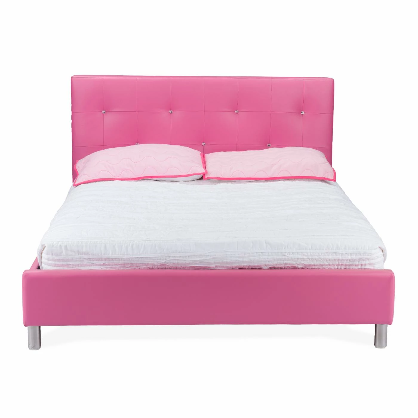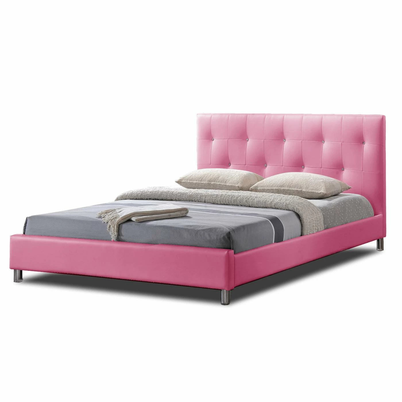 Princesses of all ages love the Baxton Studio Barbara Upholstered Platform Bed. A great way to show off your passion for pink, this full-size platform bed is fully upholstered in pink faux leather. Faux crystal accents on the button tufted details add that perfect hint of high fashion, while the silver-finished steel legs add to the allure. Plus, the frame is built tough out of a hardwood, plywood, and engineered wood combo, and light foam padding makes it easy to enjoy breakfast in bed – as all princesses do. A supportive wood slat kit is included – no box spring is required.