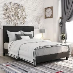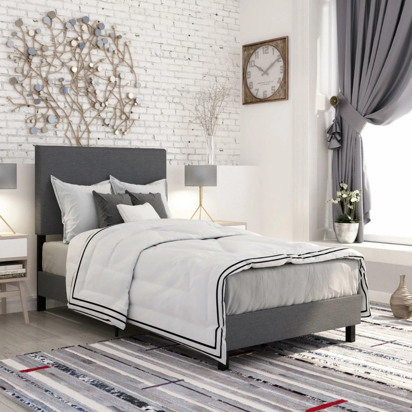 Simple and timeless, the DHP Janford Upholstered Panel Bed is a sophisticated addition to your bedroom. Designed with an upholstered headboard for elevated style and support, this bed is made of sturdy wood with a metal frame and features a center leg piece for long lasting durability. Your choice of available size and fabric will tailor to your unique style and home.