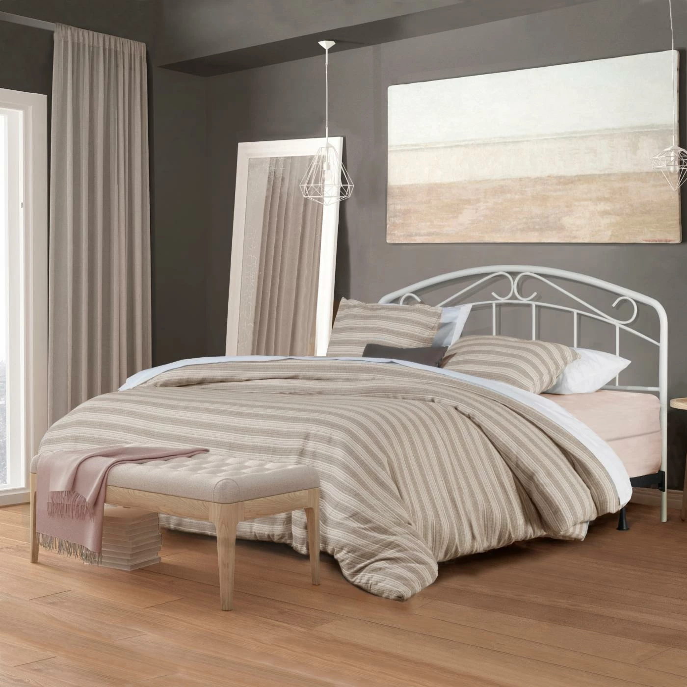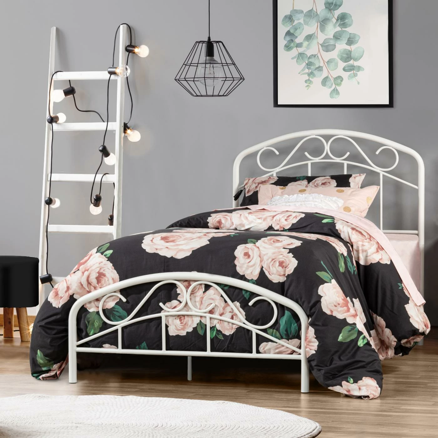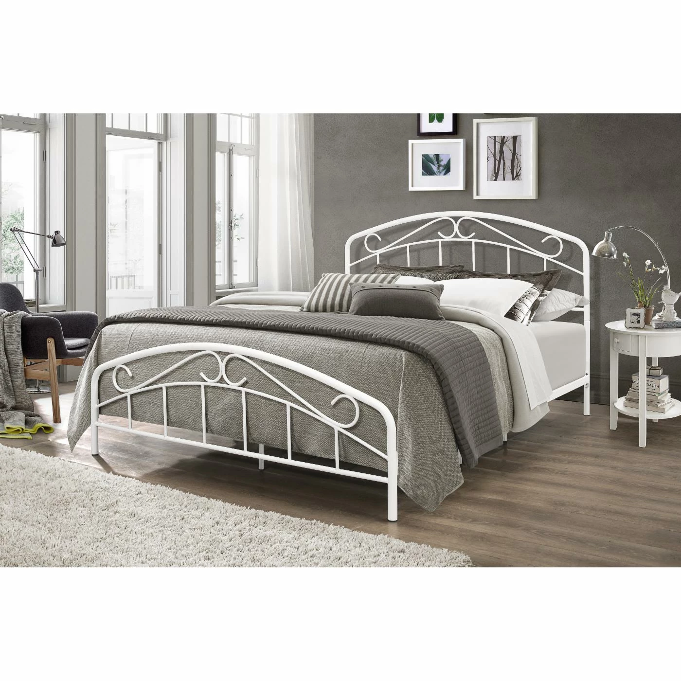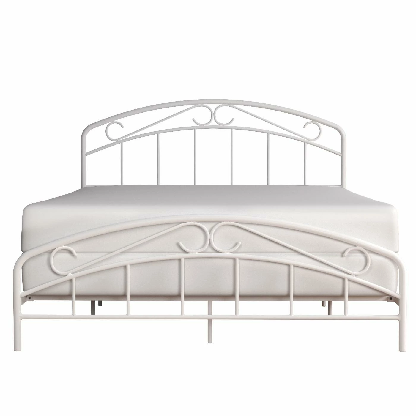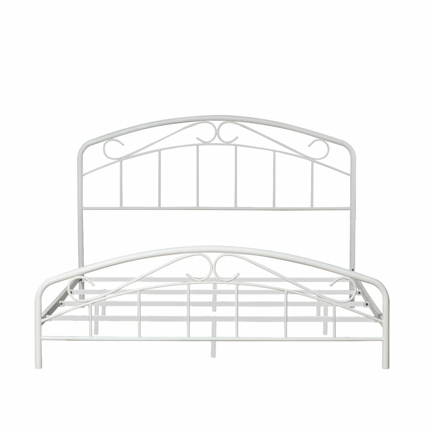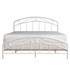 Boasting a traditional design, the Hillsdale Furniture Jolie Arched Scroll Metal Panel Bed features scroll detailing on the headboard and footboard. The combination of spindle bars and graceful scrollwork creates an aesthetic thatβs ideal in lodge and country cottage dΓ©cor schemes. Finished in white to blend nicely with most color palettes. You have the option of choosing the headboard and metal frame or the complete bed with the headboard, footboard, and metal slat support system. This bed requires a mattress and box spring which are not included. Assembly is required.
