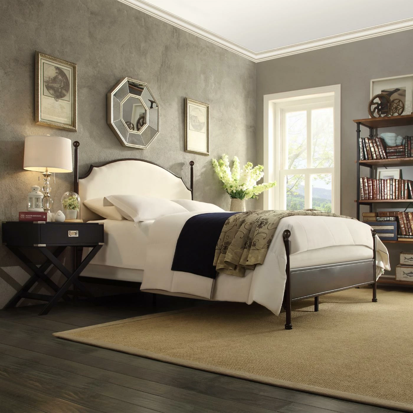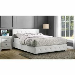 Make a style statement with the HN Home Ventura Transitional Upholstered Metal Standard Bed. Tough, long-lasting metal is used to construct the frame, finished in a charming antique cherry brown finish on the exposed surfaces. Charming beige linen upholsters the frame, offering a modern twist on a classic element.