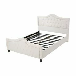 Elevate your bedroom dΓ©cor with the HN Home Fargo Transitional Tufted Queen Bed with Nailhead Trim. Crisp polyester upholstery covers every inch of the solid birch wood bed and comes in your choice of available color options to complement your palette. Both the headboard and footboard exude timeless elegance with diamond quilt button tufting and chromed nail heads.