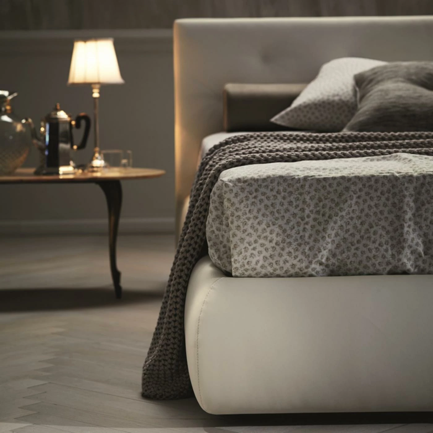 Center your relaxing retreat around the simply elegant J&M Furniture Gap Platform Bed. This bed has been designed to provide you with maximum storage space without sacrificing style. Hydraulic lifts elevate the mattress, providing you with access to the ample space housed within the upholstered frame. This bed is completed with an arched headboard featuring tufted accents for a classic touch. Choose from the available finish options when selecting this bed for your space.