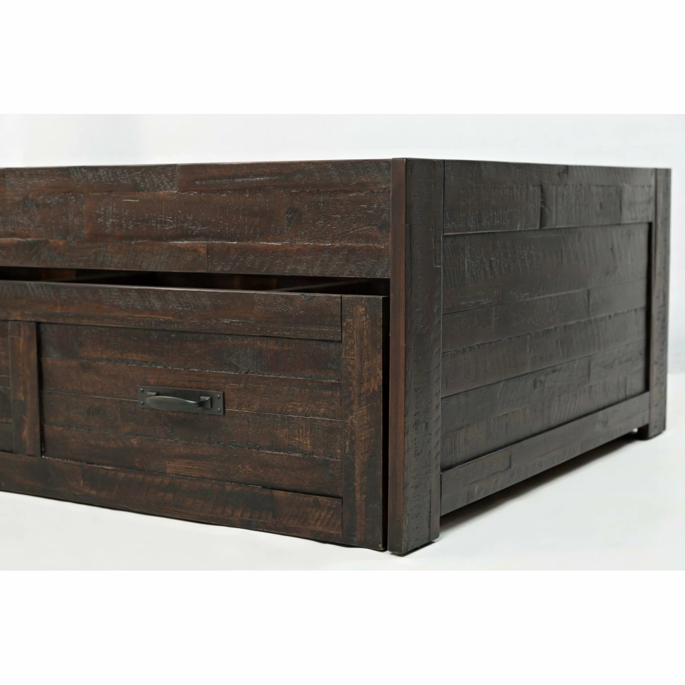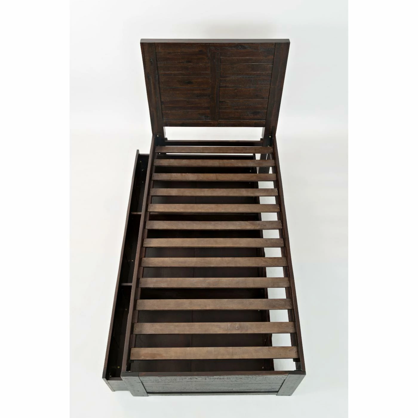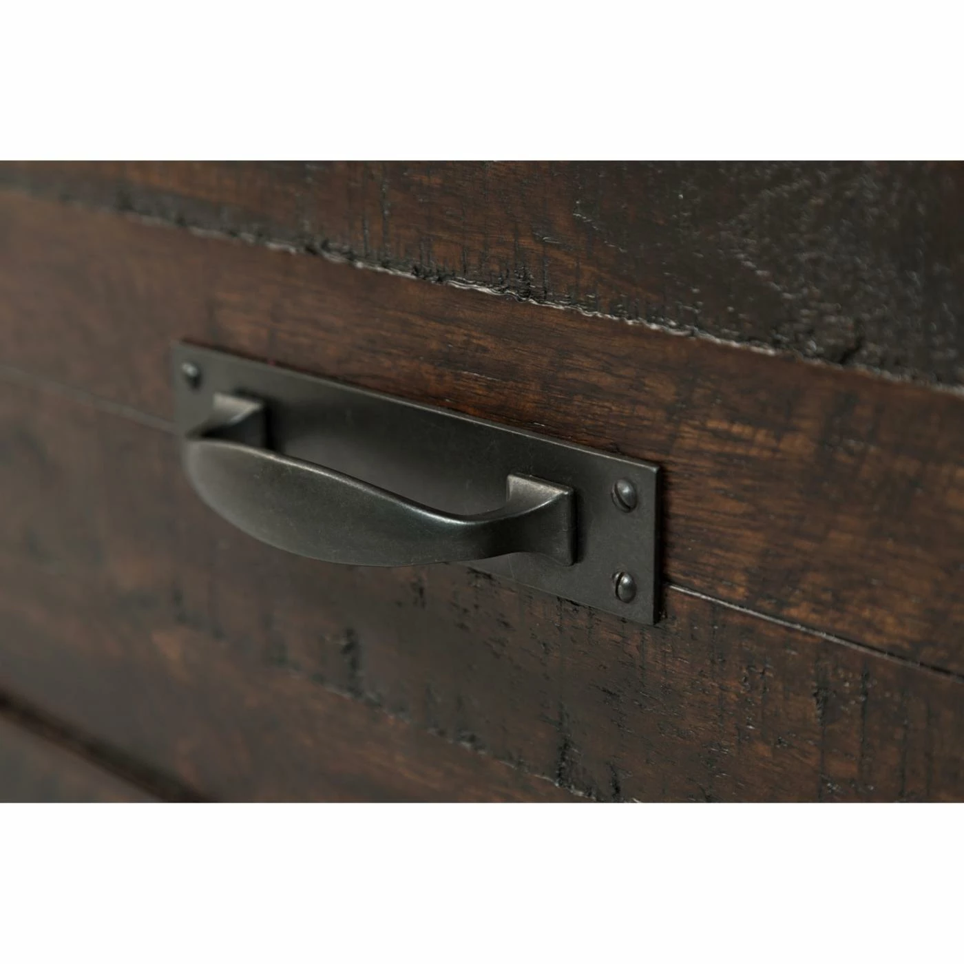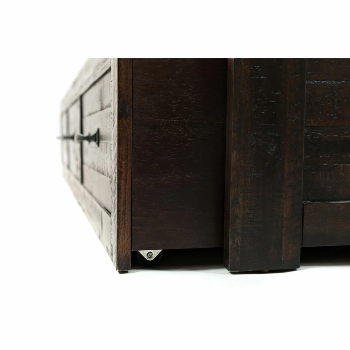 The Jofran Jackson Lodge Twin Bed with Trundle offers rustic style and convenience. Wooden slats support a standard twin mattress, while the rolling trundle can be used as underbed storage or with a mattress (not included) for an extra bed. The solid wood construction boasts a rich dark brown distressed finish and dark metal hardware.