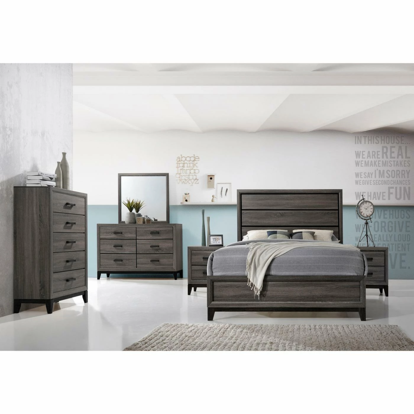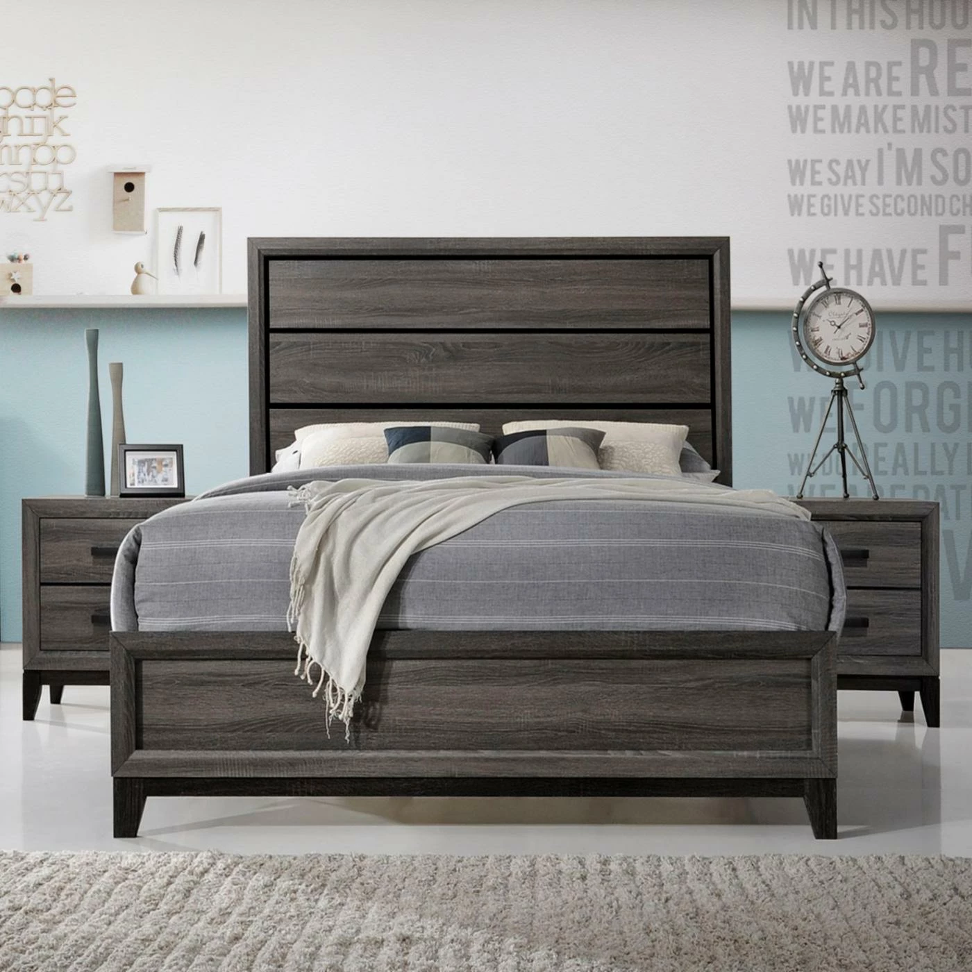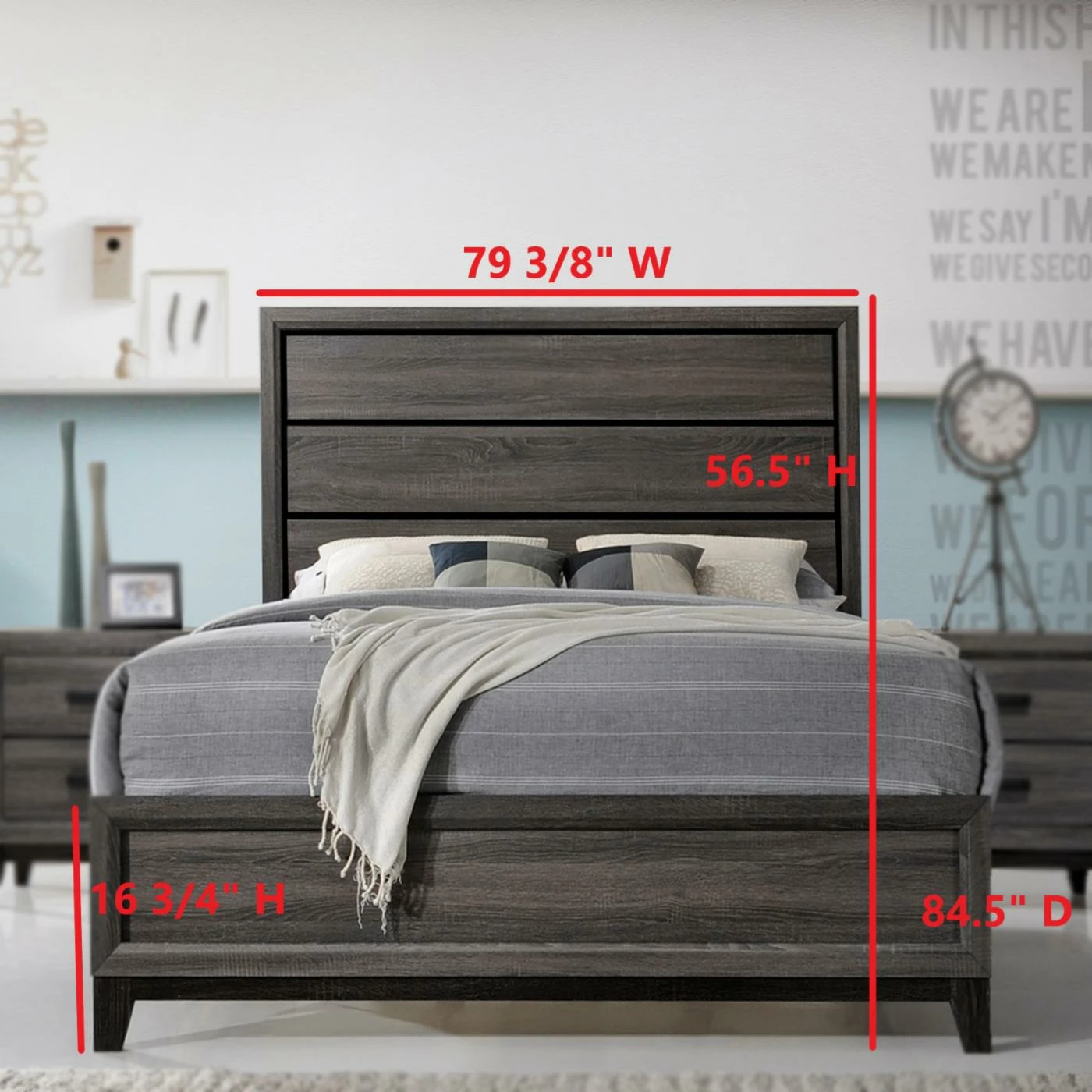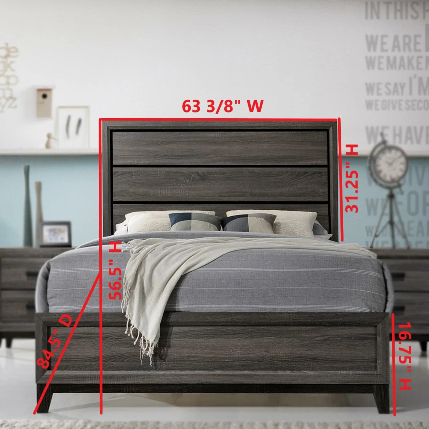 The K&B Furniture Distinctive Panel Bed provides a rustic, stylish anchor to your bedroom. Part of the Distinctive Collection from K&B, this panel bed is constructed of solid wood as well as some engineered wood and wood veneers. It’s finished in a rustic weathered gray with black contrasted trim. We love the details of this panel bed, such as horizontal panels on the headboard and the bed’s angled feet. This bed would be ideal in a modern or Scandinavian style space. Be sure to check out the other pieces in the Distinctive collection. Easy to assemble, this bed is a contemporary and versatile choice for your home.