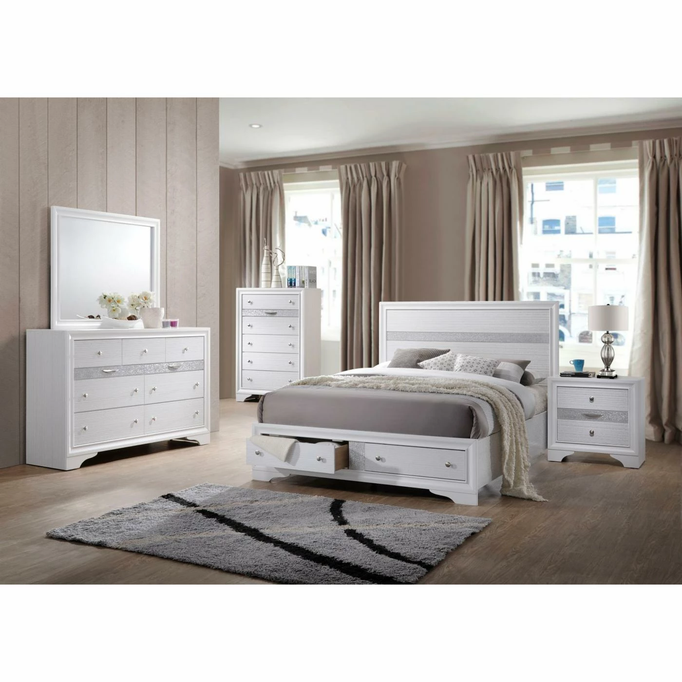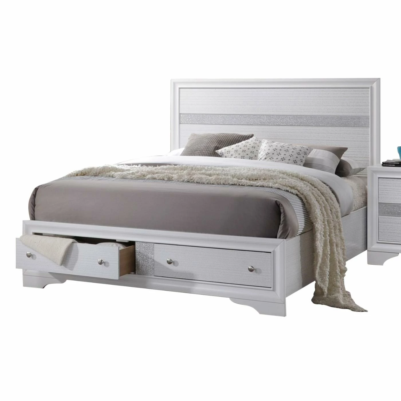 Added contemporary style and sleek design come with the K&B Furniture Elegant Storage Platform Bed. Crafted from a combination of solid hardwood and engineered wood, this platform bed features a headboard framed with molding in white and accented with a marble-inspired stripe in gray. The base has two spacious trundle drawers – fitted with silver knobs – for added closed storage options. Select from the available sizes to suit your needs. Pair with other pieces from the Elegant Collection to complete the look. Some simple assembly is required.