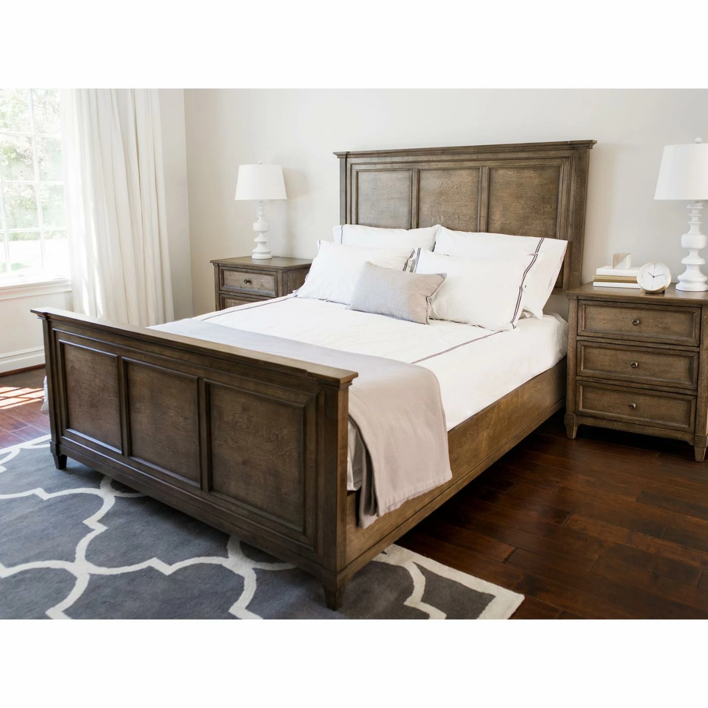 Bring the age-old appeal of weathered oak to your bedroom with the Abbyson Fontana Weathered Oak Panel Bed. This classic panel bed features a high headboard with a tri-panel design. Crafted of dense, durable solid rubberwood, this bed is crafted with tapered square feet and a timeless, classic aesthetic.