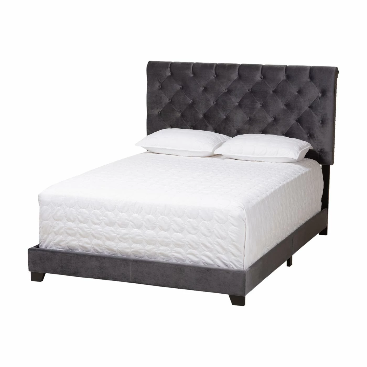 Replete with luxury and elegance, the Baxton Studio Candace Velvet Upholstered Low Profile Bed adds a touch of glam to any bedroom. The bedβs velvet upholstery is beautiful accented by button tufting and nailhead trim in chrome. Crafted from rubberwood and engineered wood for strength and durability, this modern bed is made to last. Select from available sizes to find the perfect fit for your bedroom.
