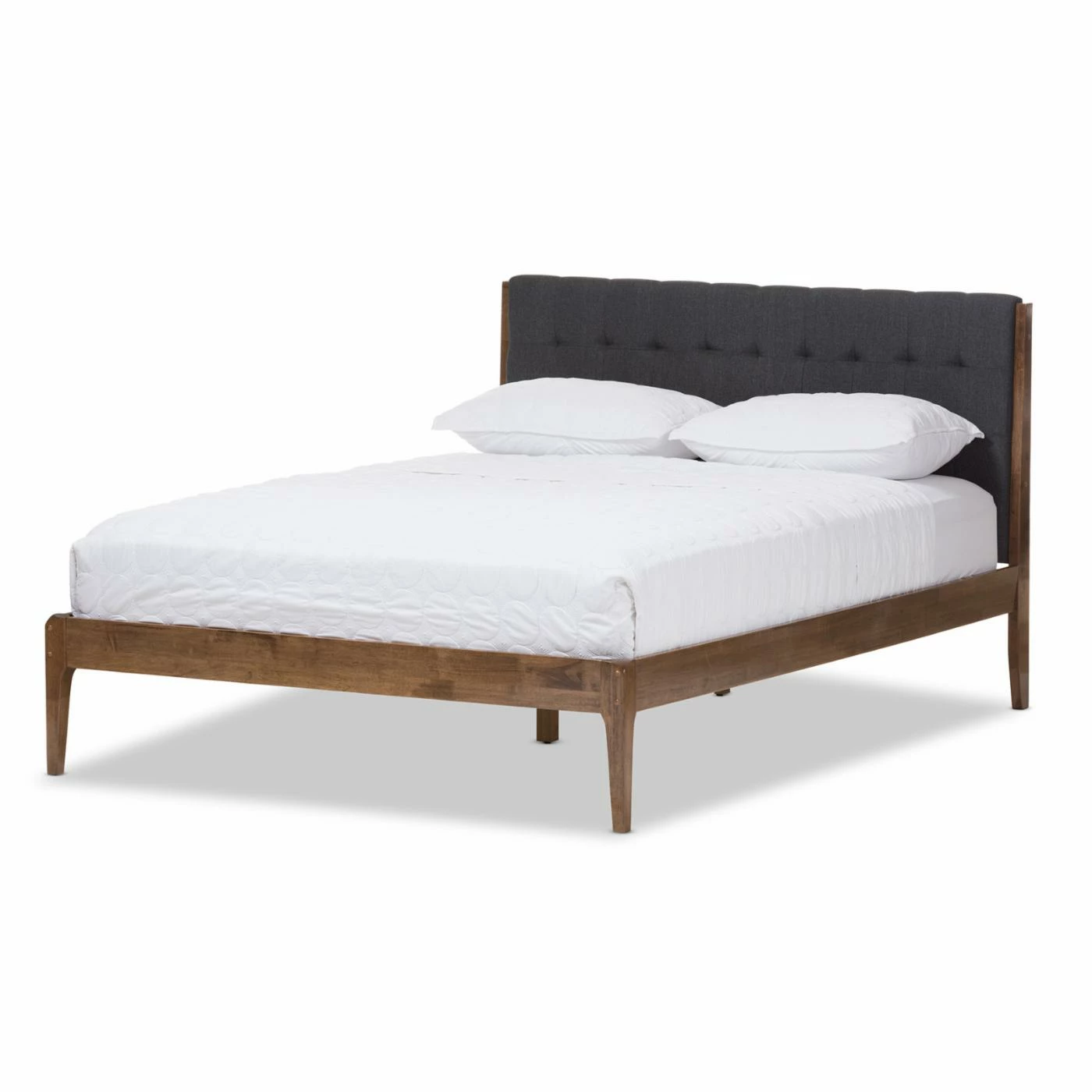 The comfortably chic Baxton Studio Clifford Platform Bed features dapper grid tufting and is upholstered in your choice of available fabric color. Its tapering legs, sleek footboard, and matching rails are made of rubberwood in a handsome walnut finish. The platform base of this bed doesn’t require a box spring. Choose from available sizes.
