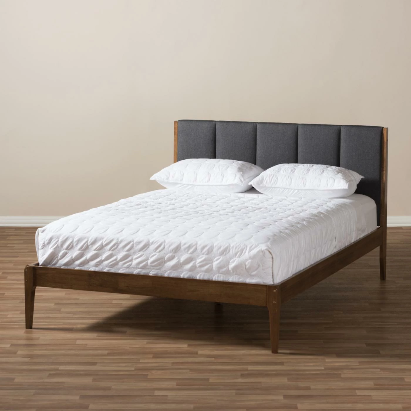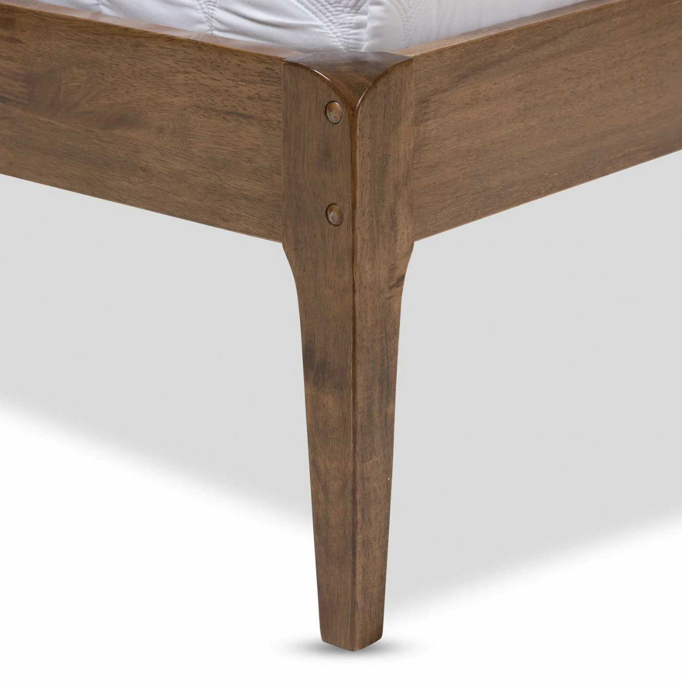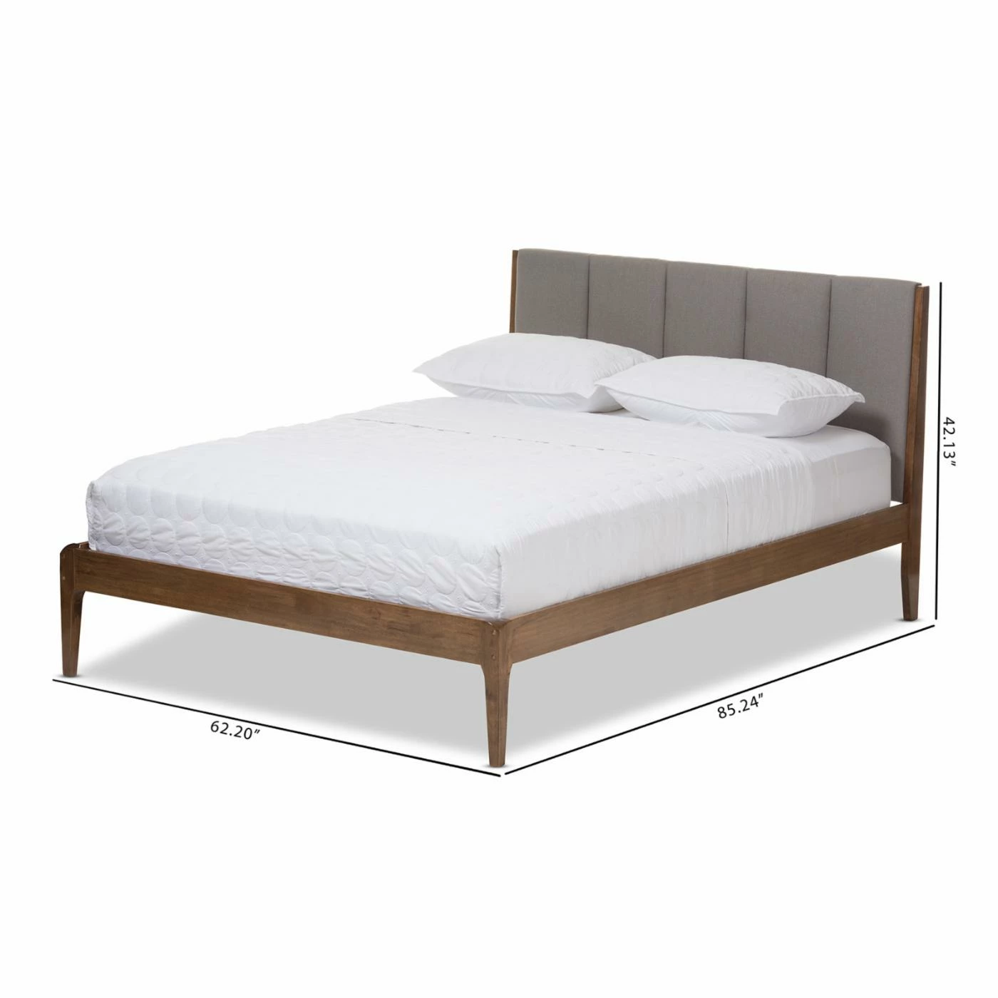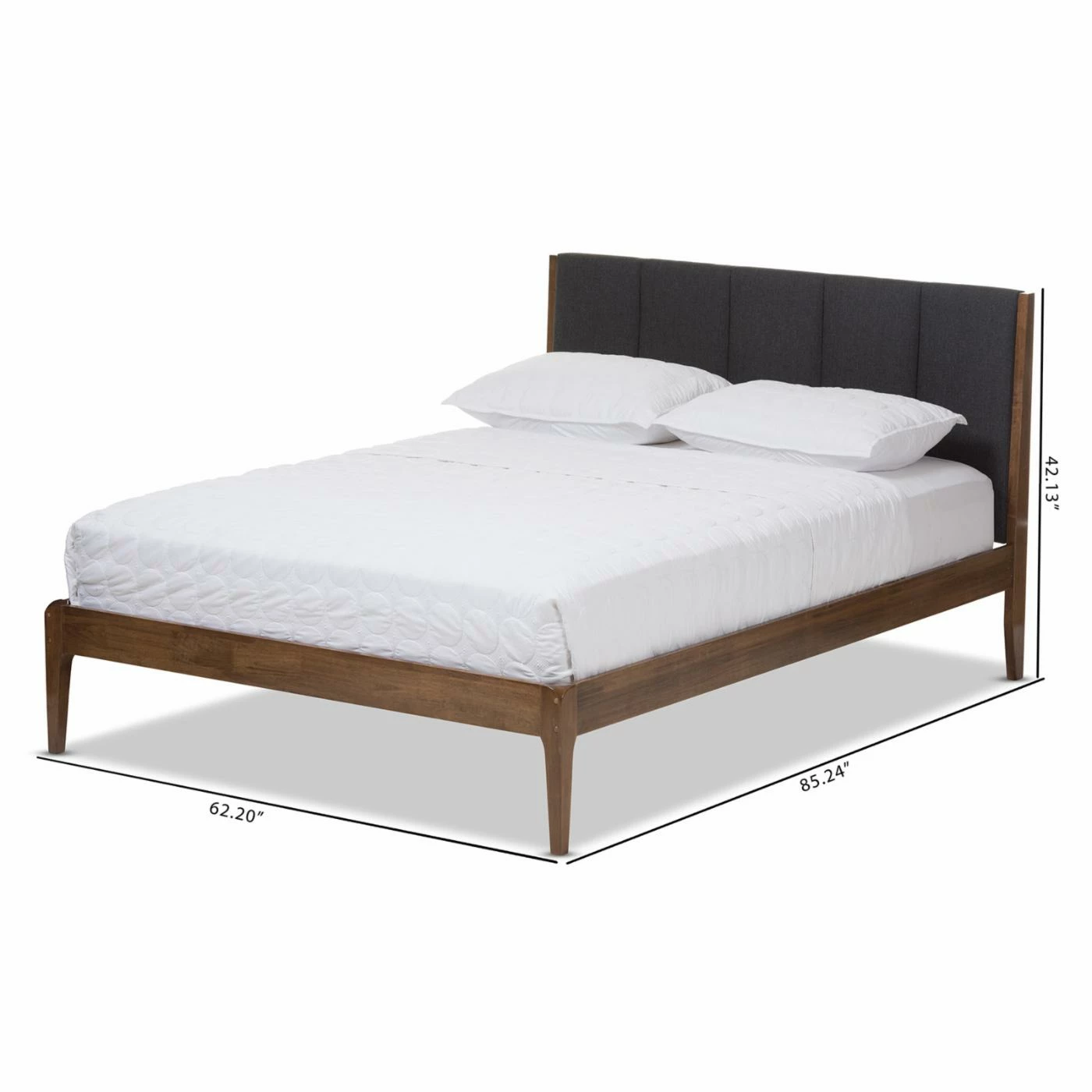 Vertical tufting and your choice of upholstery color make this Baxton Studio Ember Platform Bed a comfortably chic choice for your bedroom. The sleek legs, footboard, and rails are made of rubberwood in a versatile walnut finish. The platform base of this bed doesn’t need a box spring. Choose from available size options.