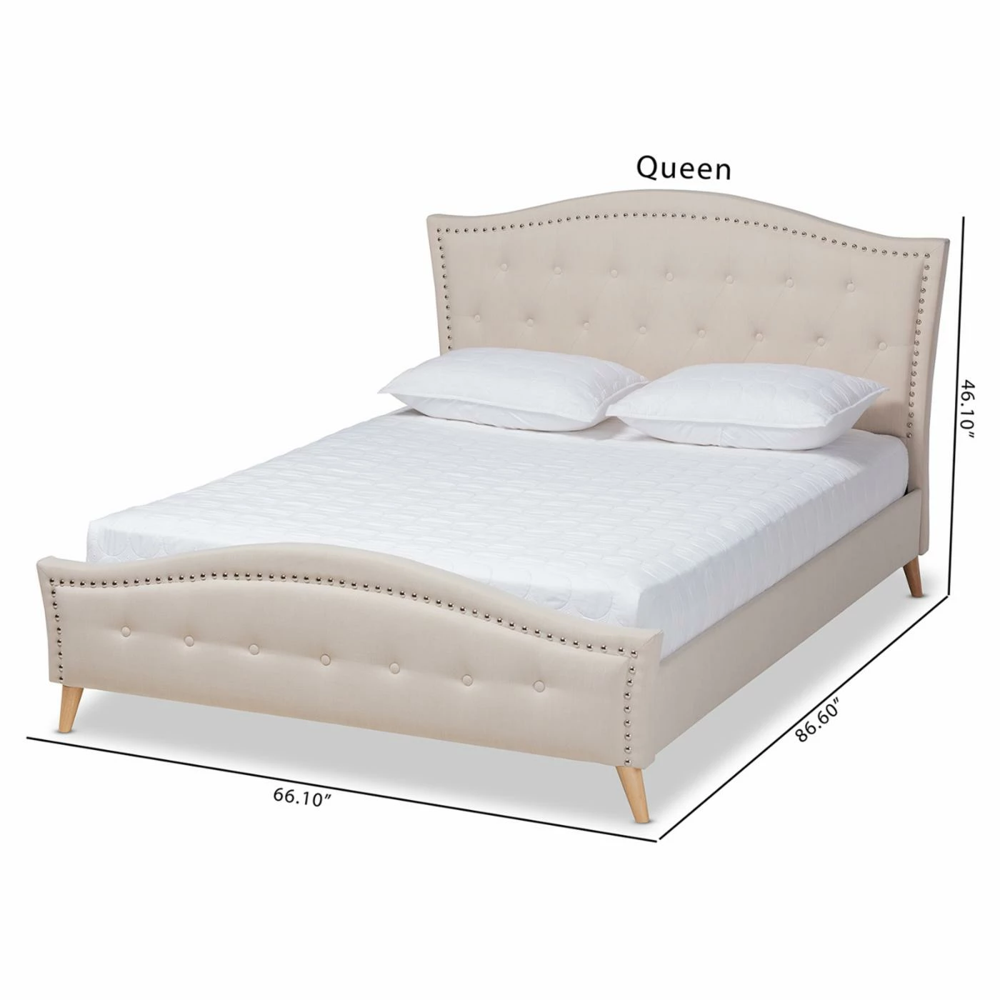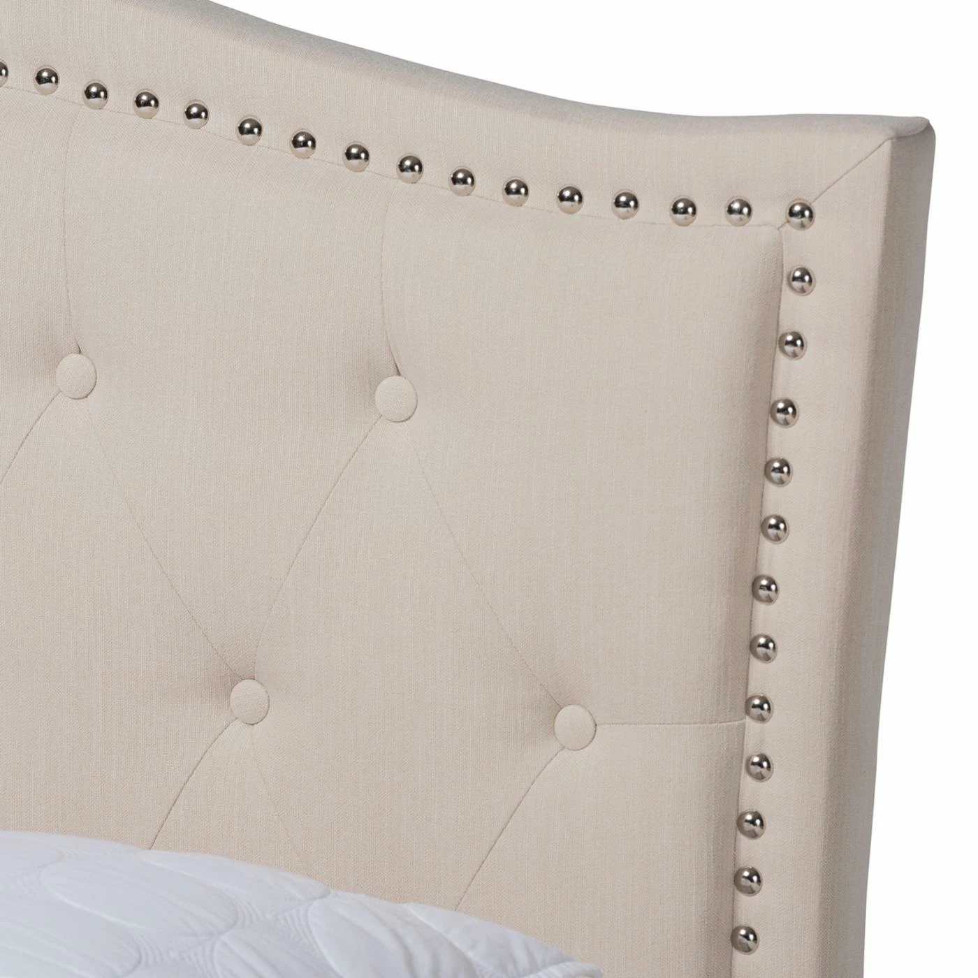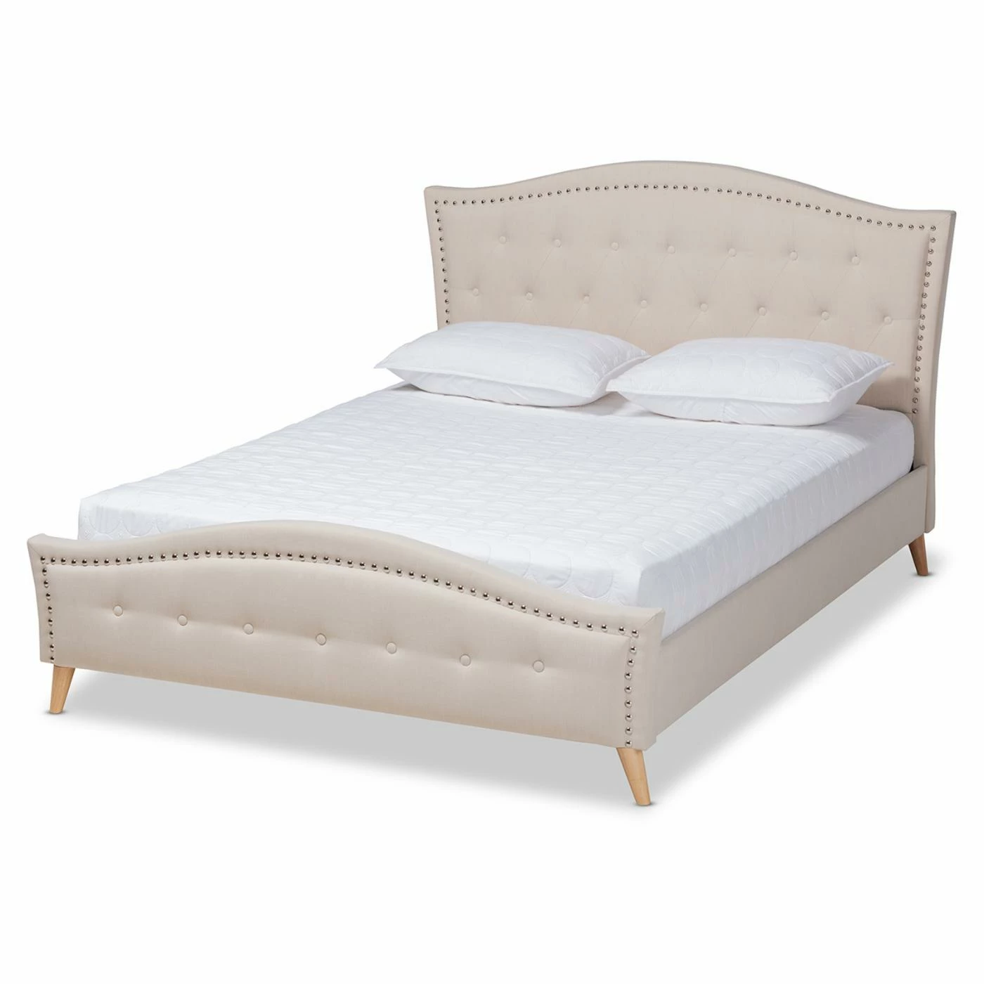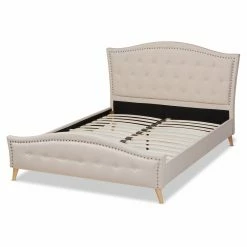 The arched headboard and footboard on the Baxton Studio Felisa Tufted and Upholstered Platform Bed feature button tufting and nailhead trim. This platform bed is durably constructed of rubberwood and engineered wood. The frame is padded with foam and upholstered with polyester fabric. Choose from the available sizes and upholstery colors.