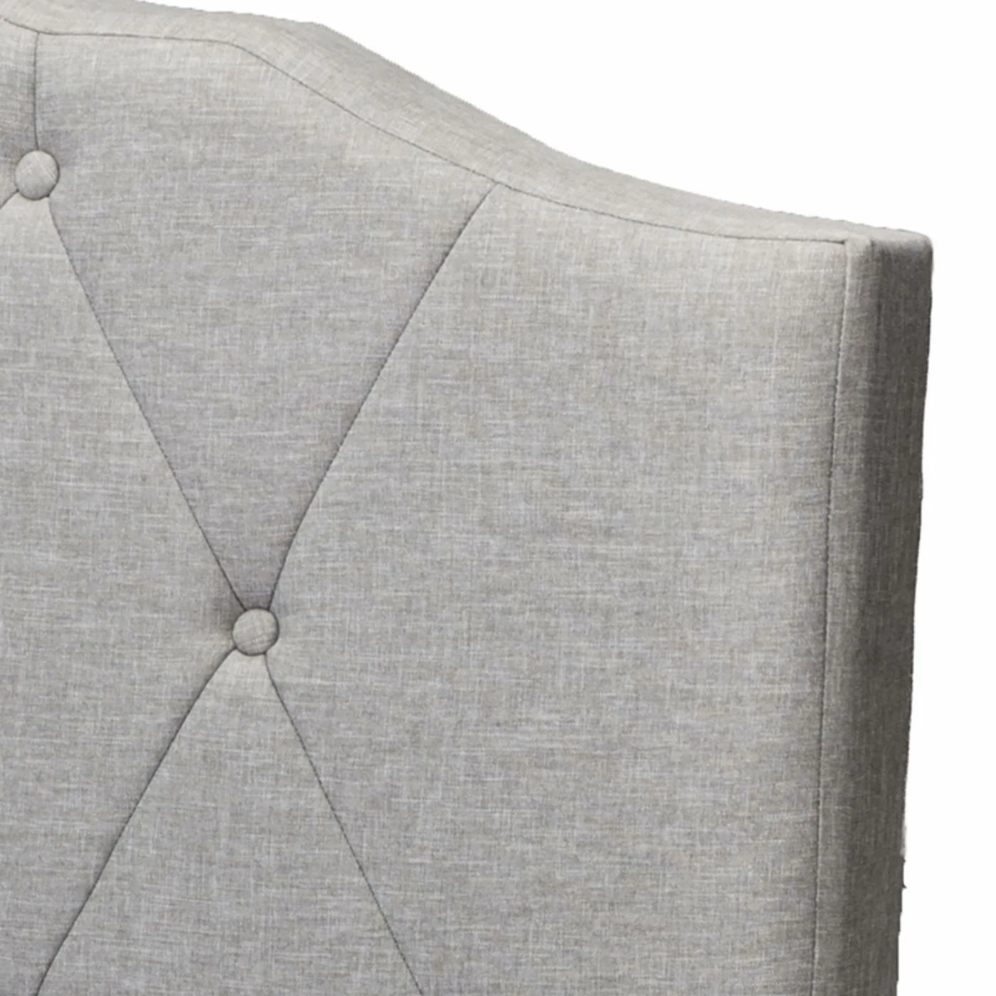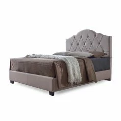 With its scalloped headboard and diamond-pattern tufting, the Baxton Studio Juliet Upholstered Platform Bed is like a valentine for your design space. A solid rubberwood frame is fully upholstered in linen in your choice of color. Generous foam padding makes it easy to prop up in bed, and non-marking rubberwood feet are finished in a rich wenge tone. A slat kit is cinluded, so no box spring is required.