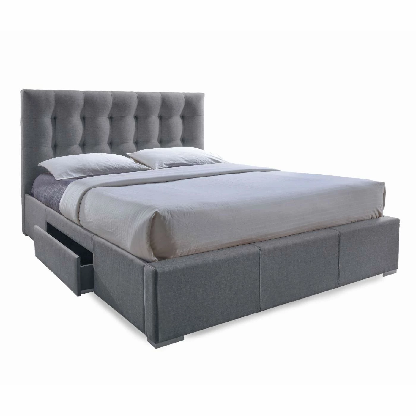 The grid-tufted design on the Baxton Studio Sarter Upholstered Storage Platform Bed offers a clean, modern look that’s stylish for most any space. Generous foam padding makes it easy to prop up in bed, and the fabric upholstery is available in your choice of color. Even better, you’ll find two storage drawers built into the base – one on each side. And no box spring is required because a supportive engineered wood slat system is included. In your choice of size.