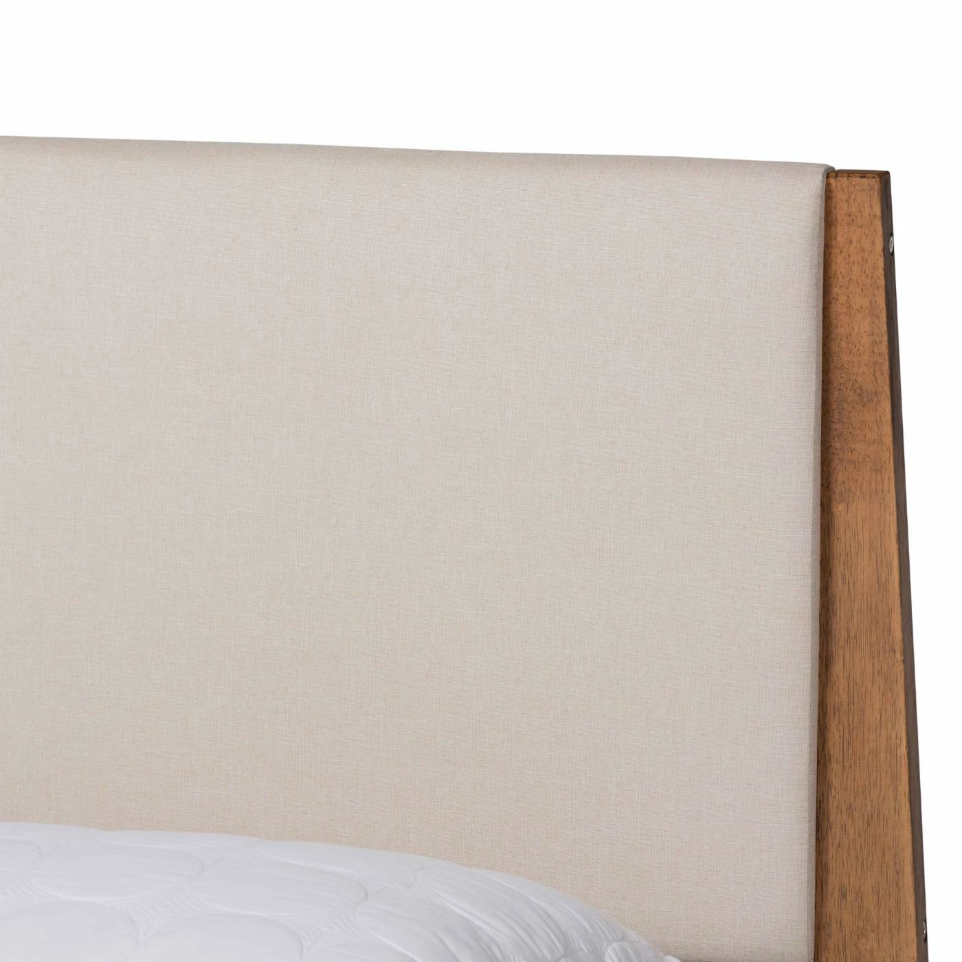 - Headboard is upholstered in fabric and foam
