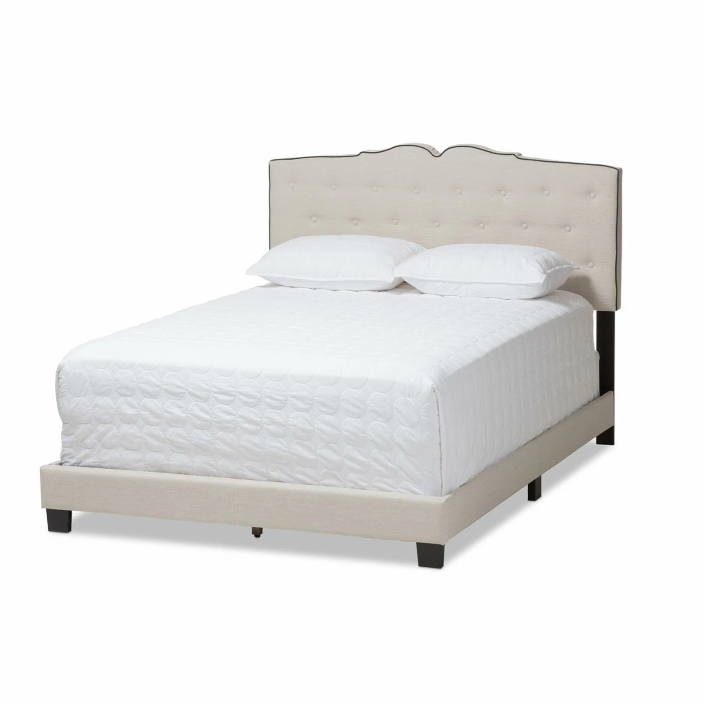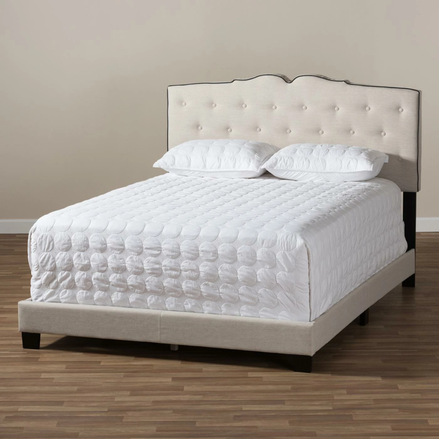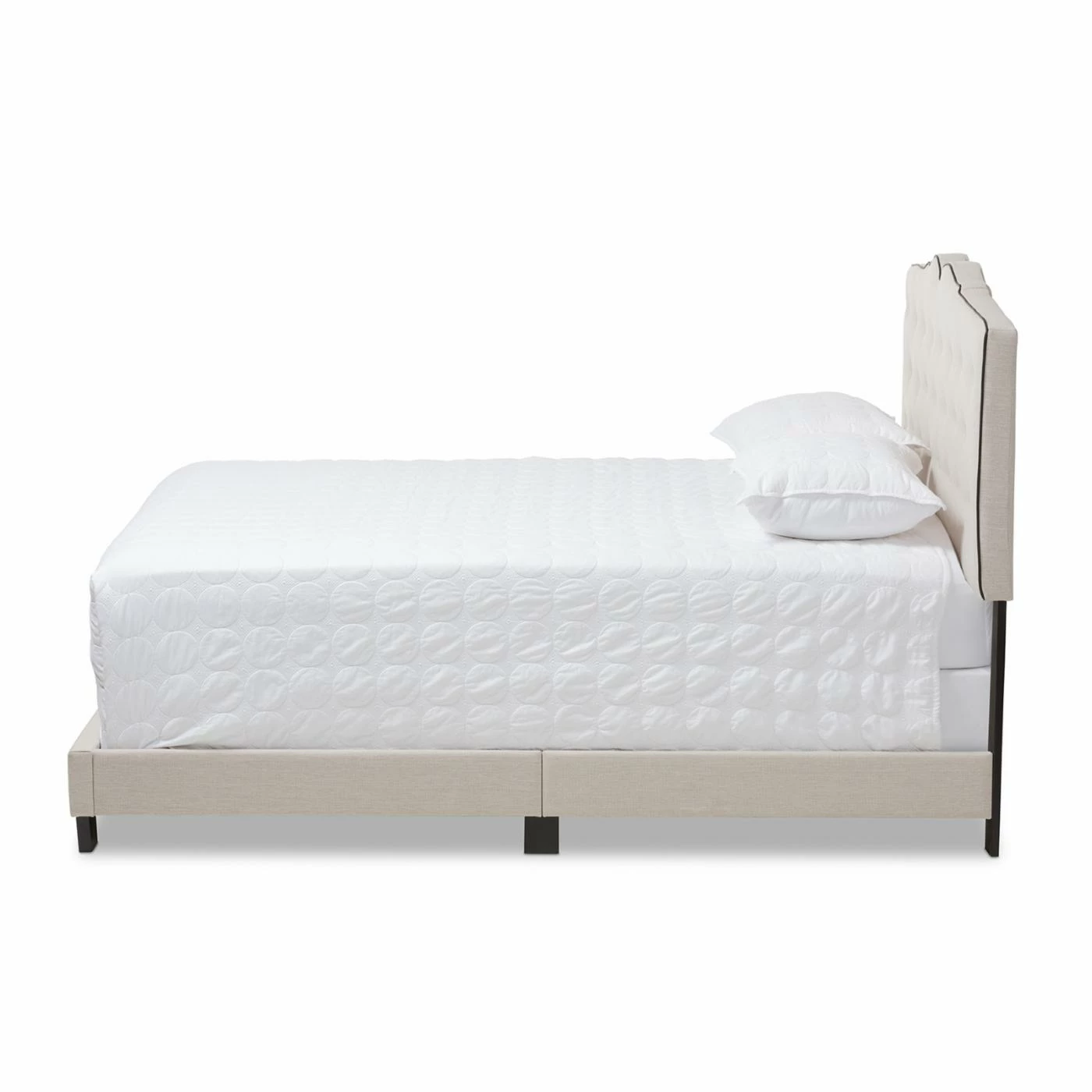 The Baxton Studio Vivienne Upholstered Low Profile Bed showcases sophisticated modern style and comfort. The padded headboard is upholstered in soft fabric and features edged piping detail. Button tufting lends a tailored look. It’s built of rubberwood for lasting durability. This low profile bed is offered in your choice of available color and size.