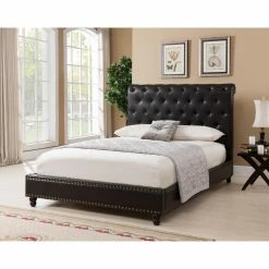 When your bedroom craves classic style, try the Boraam Wentworth Upholstered Platform Bed. This timeless, handsome piece features high-quality faux leather upholstery with a tall button-tufted headboard. Nailhead trim lines the headboard and footboard for a stylish, on-trend look. Simply choose from available size options.