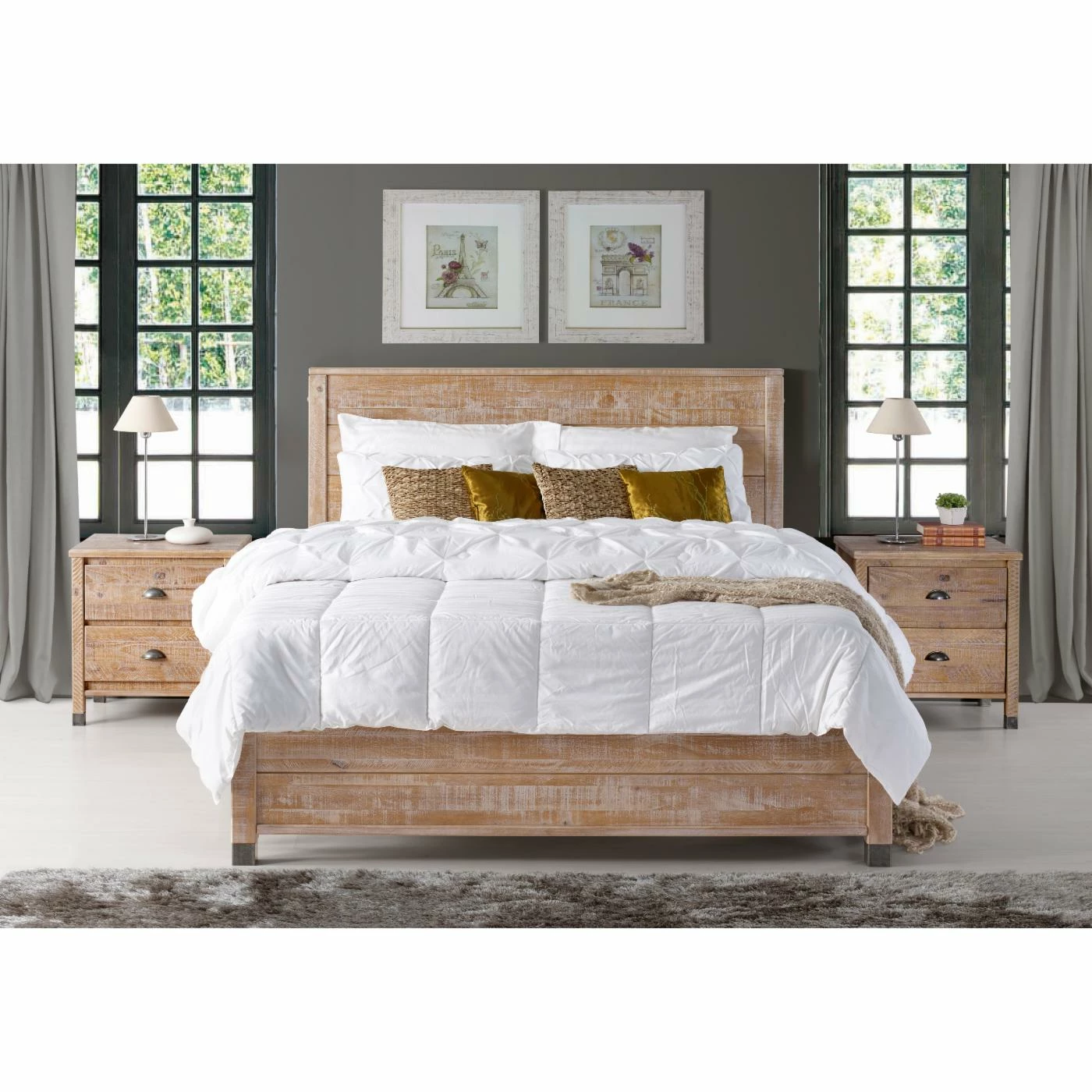 Create the perfect centerpiece for your rustic or country bedroom with the Camaflexi Baja Platform Bed. This platform bed includes the headboard, footboard, side rails, and a 12-piece slat support system, so you don’t even need a box spring! The bed is made of solid pine wood with your choice of available distressed, rustic finish. The slat-style headboard and footboard create a simple, versatile look. Steel-wrapped accents on the feet complete the farmhouse-inspired design. Choose from available sizes to fit your bedroom.