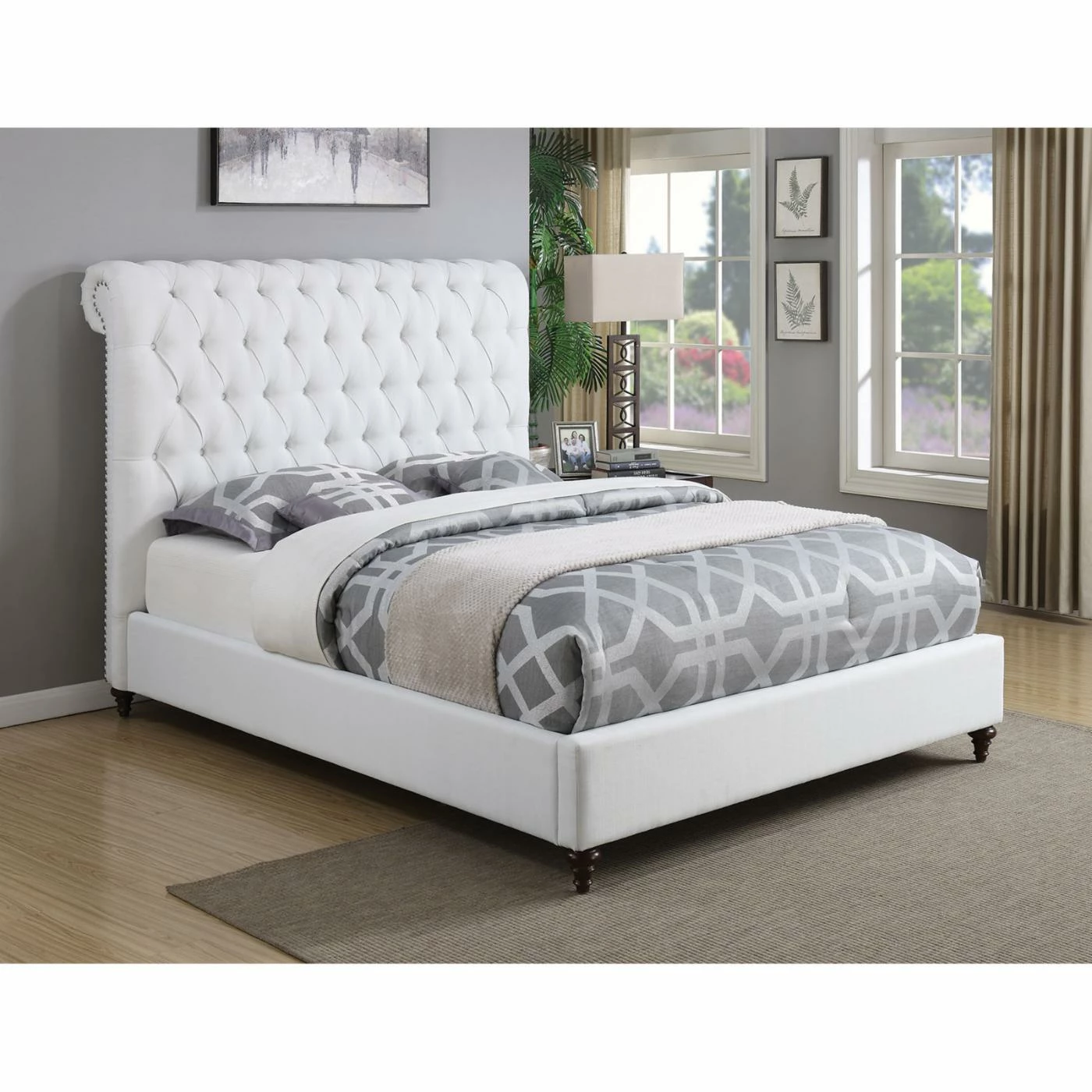 Elevate the look of your bedroom with the Coaster Furniture Devon Upholstered Bed, boasting a detailed tufted upholstered headboard accented with chic nail head trim. This stylish bed sits on a sturdy platform with turned legs for added flair. Choose your favorite available color to bring your bedroom the perfect look that suits your modern style.