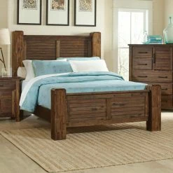 Head off to dreamland in rustic style in the Coaster Furniture Sutter Creek Panel Bed. This panel bed is constructed of strong wood and finished in a warm vintage bourbon tone that shows off the natural grain. It does not require a box spring which allows you to place your mattress right on the bed frame.