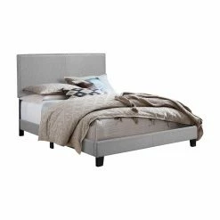 Silver nailhead accents outline the Crown Mark Erin Upholstered Nailhead Panel Bed. This panel bed features a wood frame and gray fabric upholstery. Choose from the available sizes to best fit your mattress. Pair this bed with other traditional bedroom furniture and dΓ©cor.