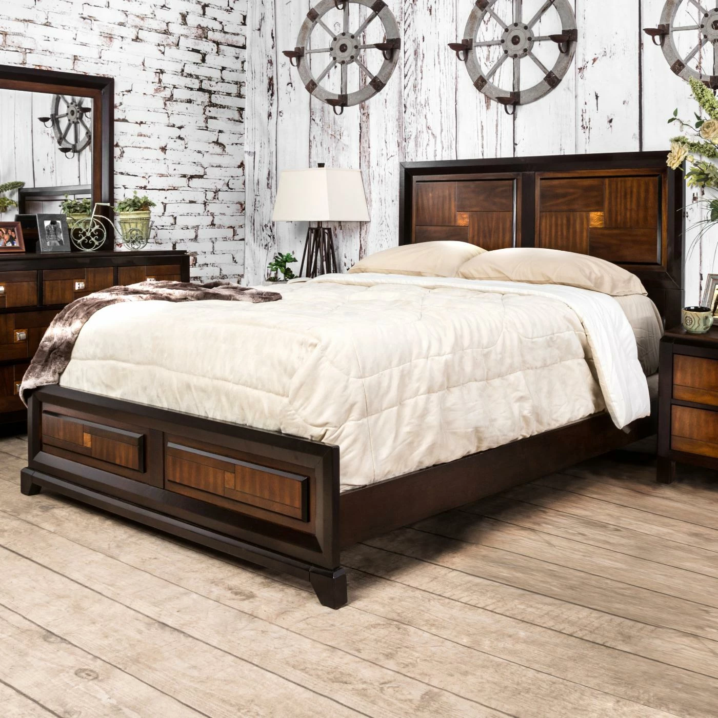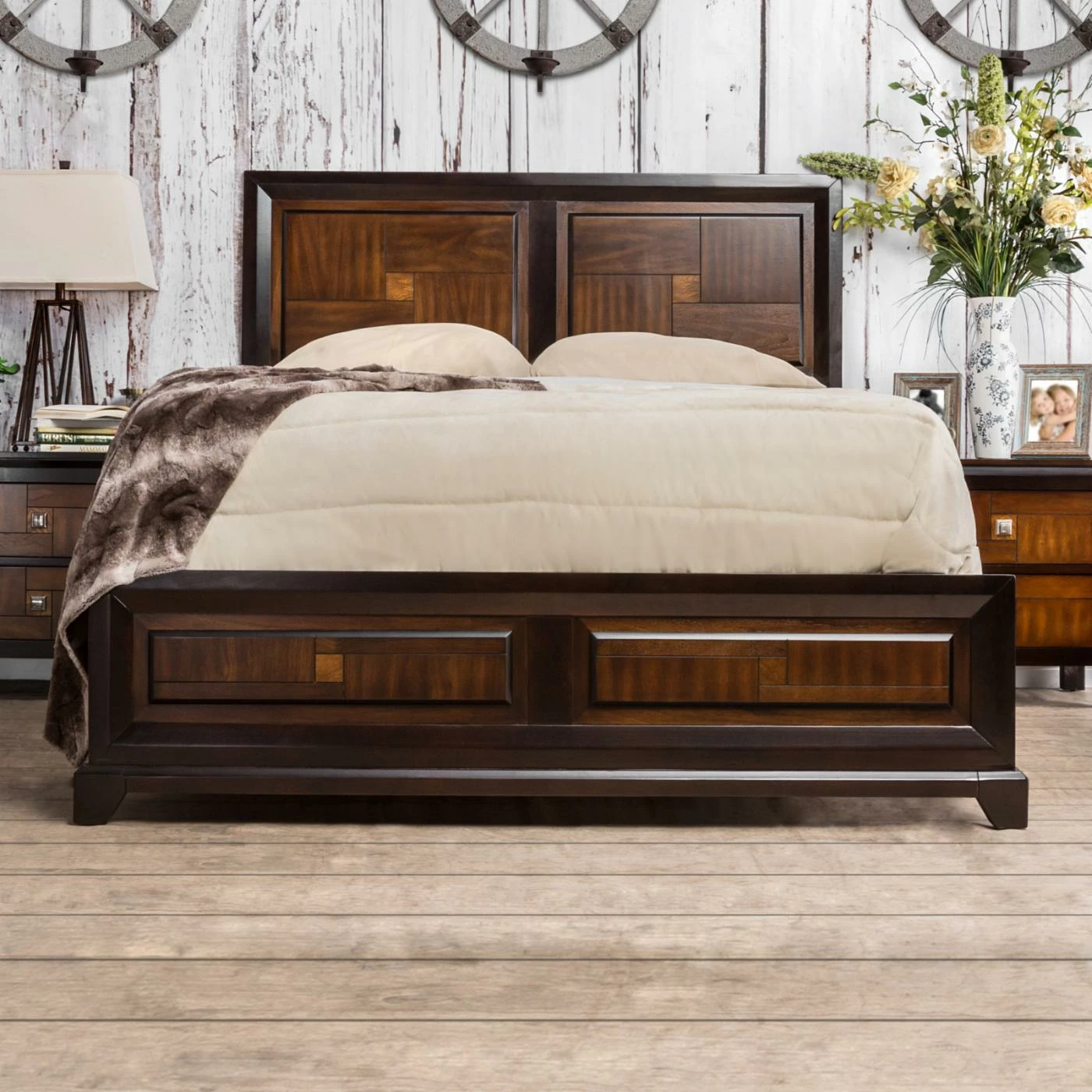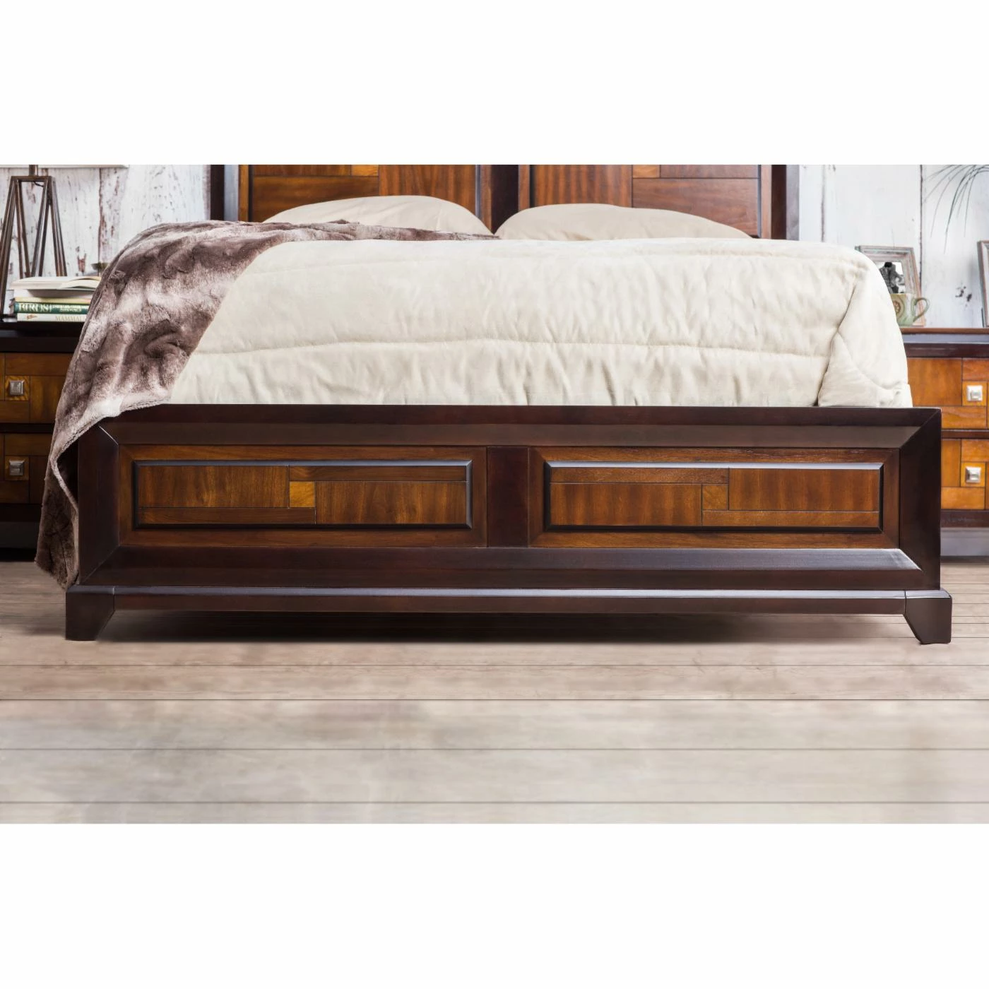 A gorgeous focal point for any bedroom, the Furniture of America Alma Panel Bed features a contoured pattern on its headboard and footboard. Finished in a gorgeous two-tone acacia and walnut, this bed has a solid wood construction to provide years of beautiful, comfortable sleep.