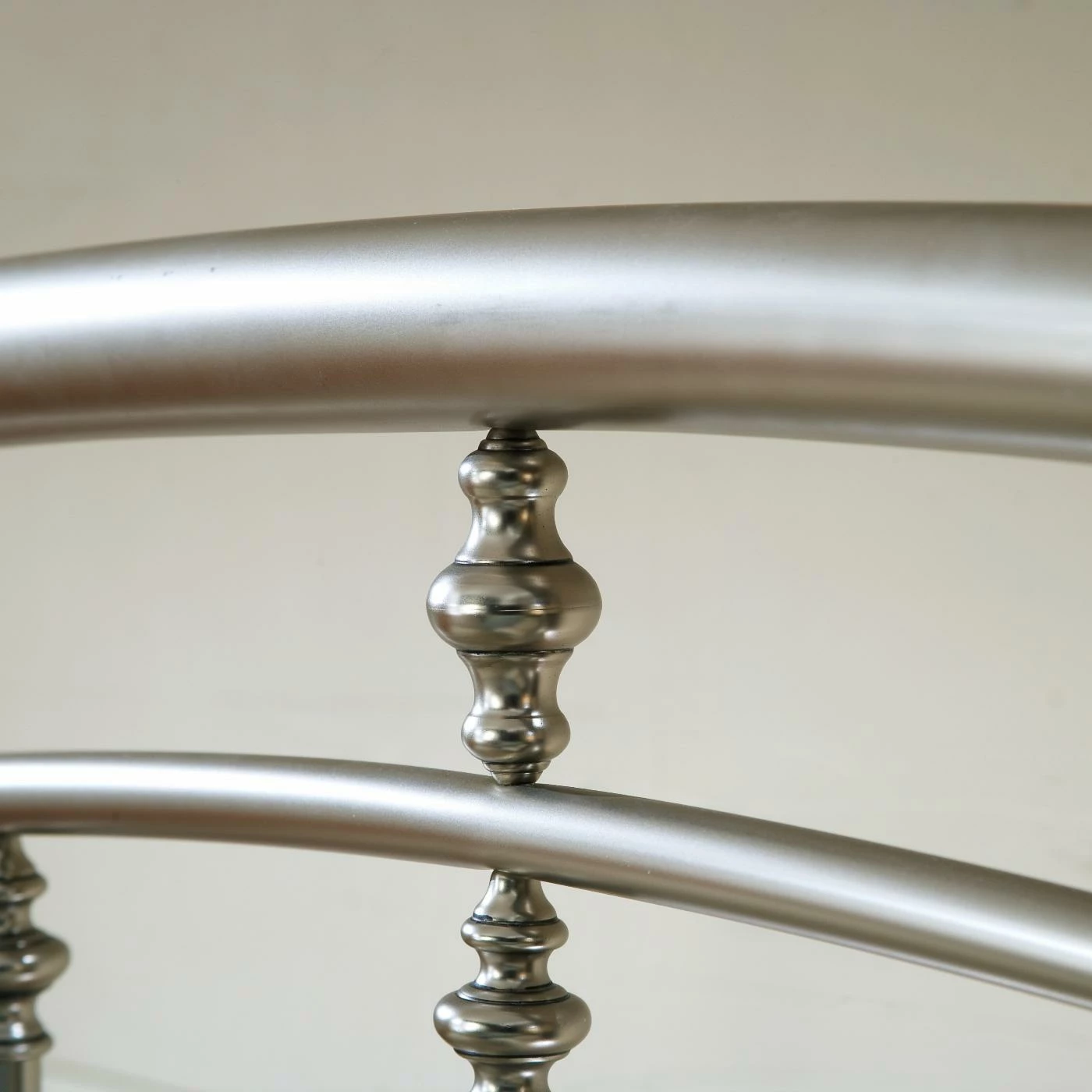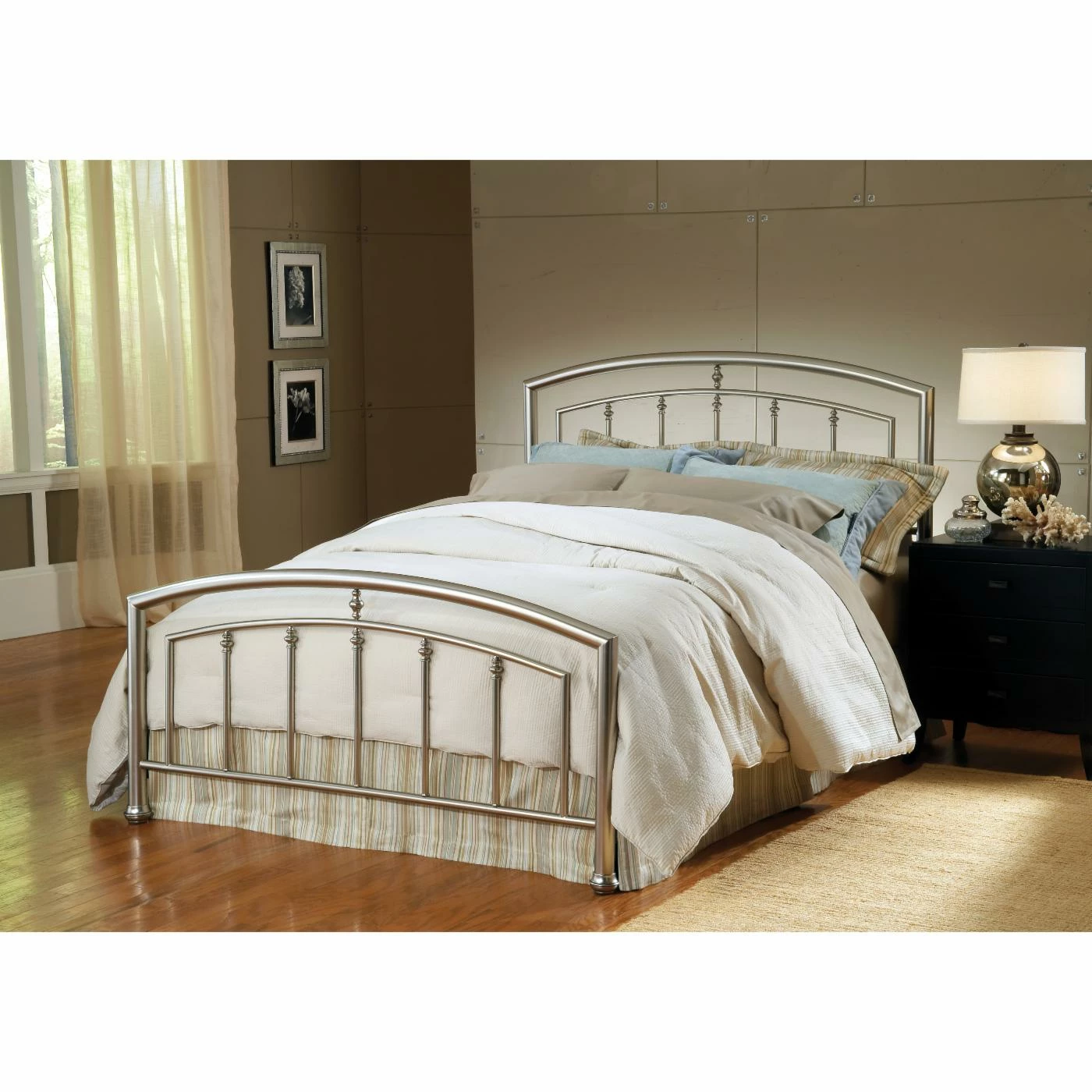The elegance of traditional style shines through in the Hillsdale Furniture Claudia Bed Set. This panel bed boasts a double arched headboard with curved finials and sleek spindles. A matte nickel finish completes it. This bed is offered in multiple size options.
