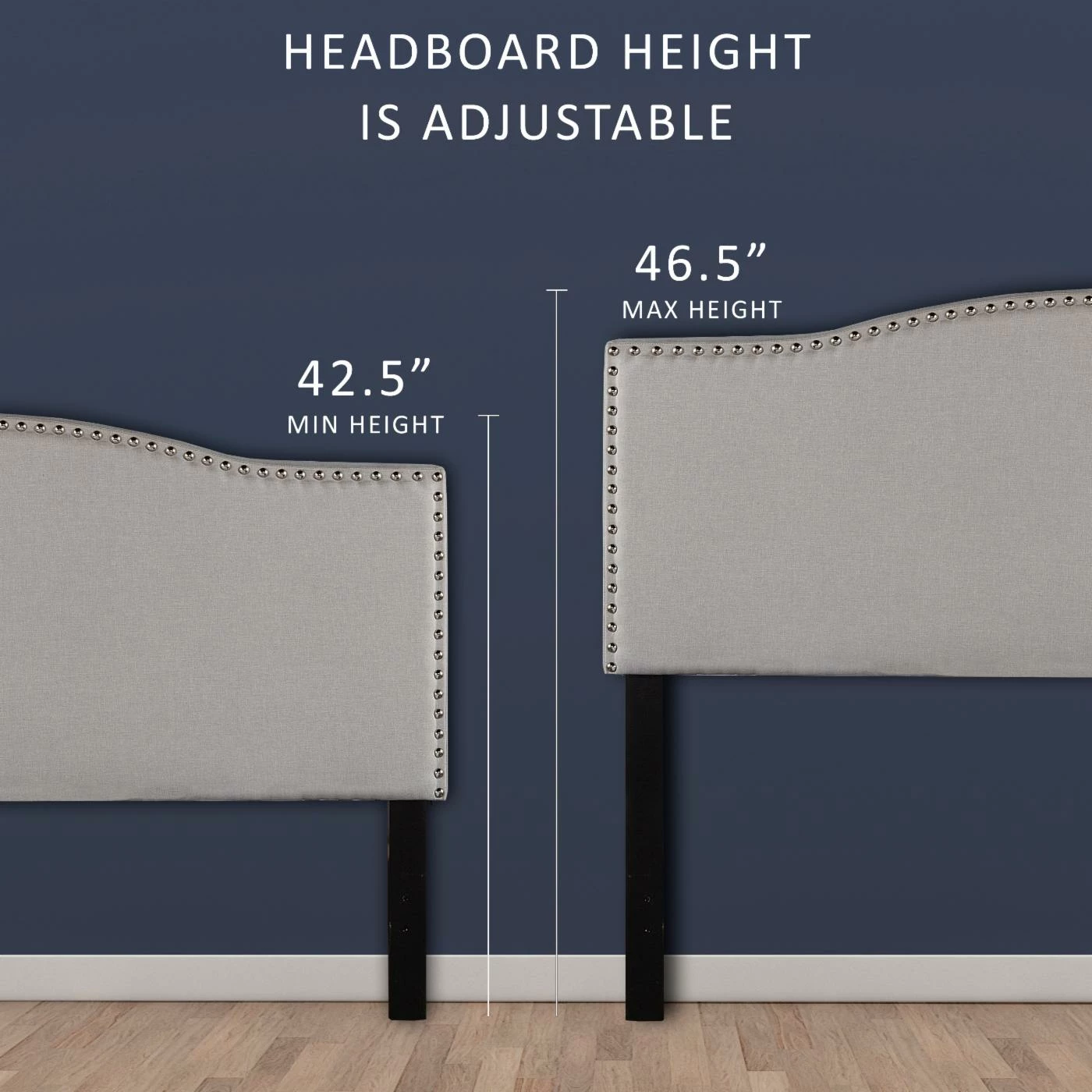 - Fog gray fabric with nailhead trim