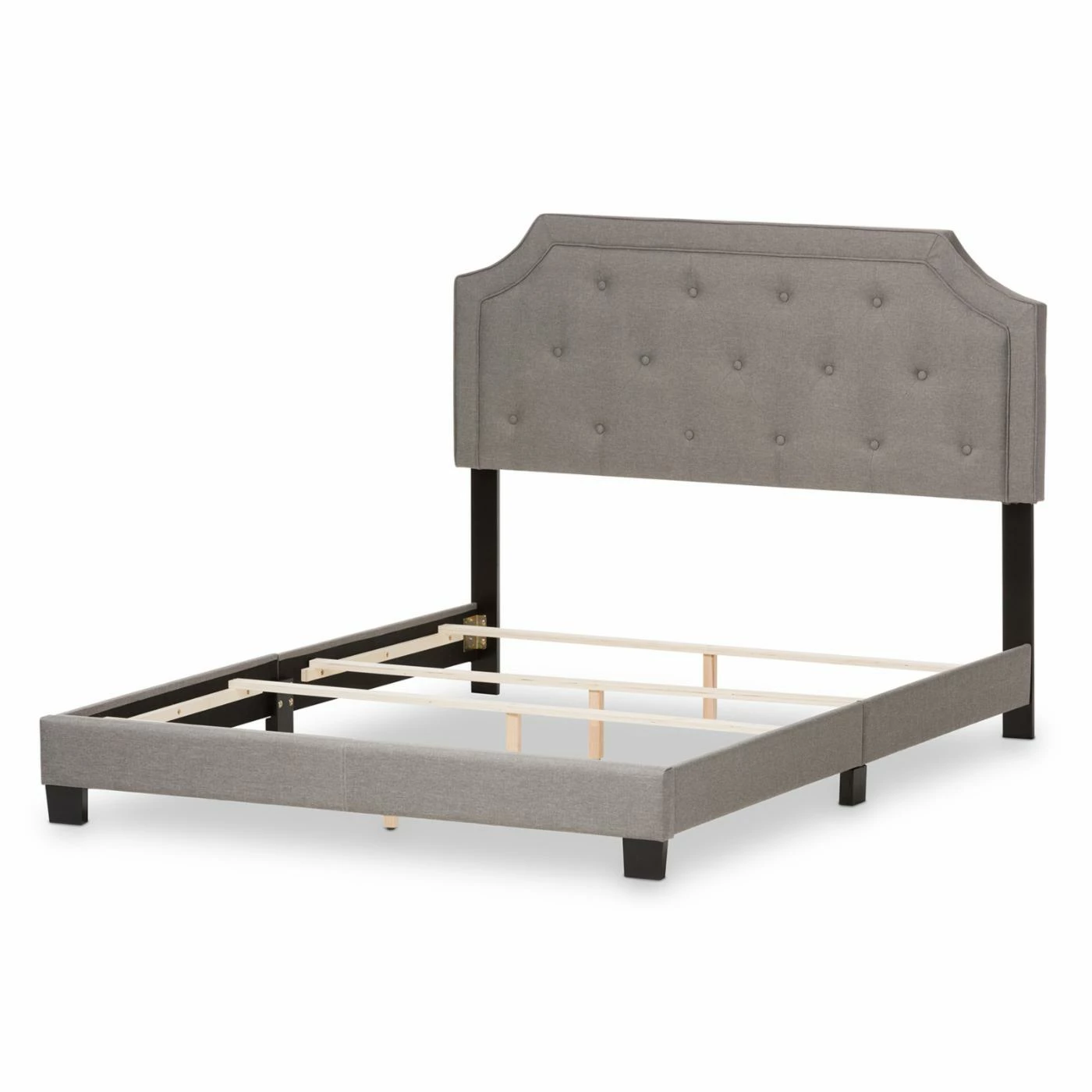 The notched headboard of this HN Home Carlsbad Transitional Low Profile Bed is fully upholstered, button tufted, and trimmed in piping. Low profile footboard and rails are upholstered to match. The bed comes in your choice of available polyester fabric color and size option.