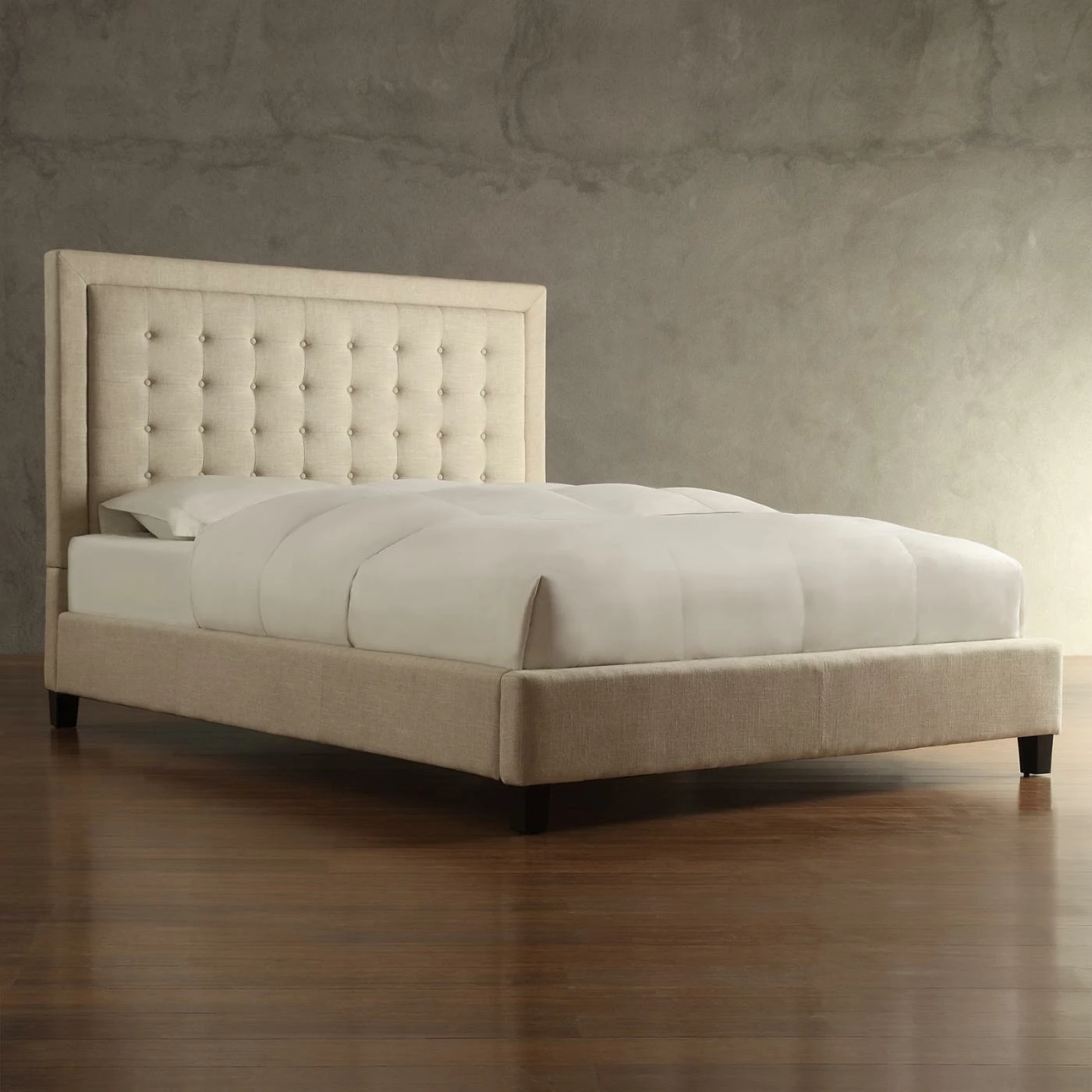 The HN Home Norwalk Transitional Upholstered Low Profile Bed has a low, subtle profile that offers support and comfort without overtaking your bedroom design scheme. This charming contemporary-style bed has wide, tall headboard with thickly-padded tufted panel. Solid poplar hardwood is used to construct the frame, padded thoroughly with dense foam. Fine, high thread count linen upholsters the frame, available in your choice of color.