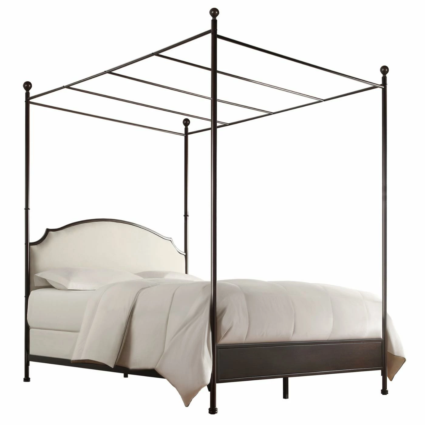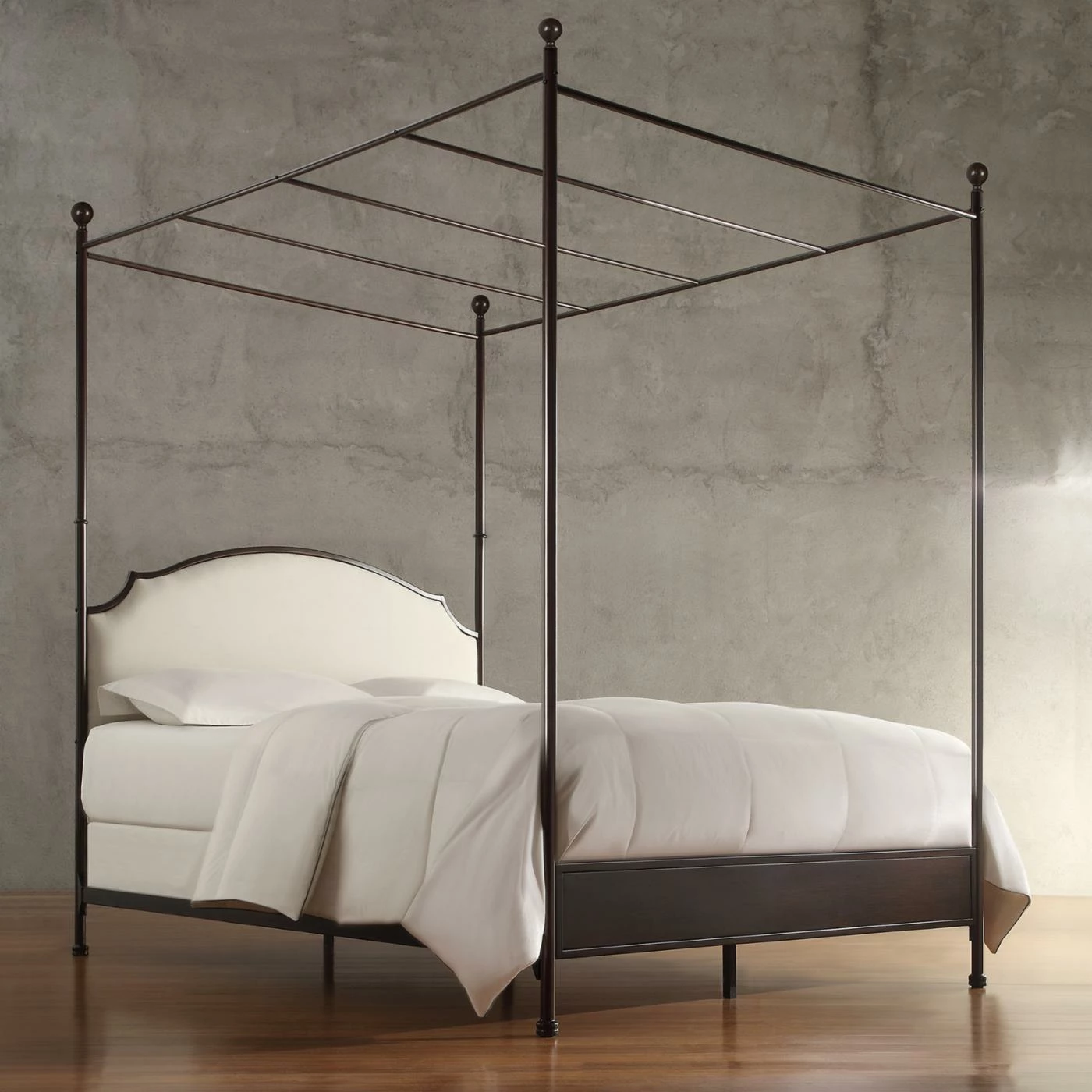 The HN Home Redding Transitional Upholstered Metal Canopy Bed is an excellent option when you want your bed frame to command attention. Its canopy style frame is built from solid metal and finished in a handsome antique cherry brown color on the exposed elements. The headboard is padded generously with dense polyurethane foam and upholstered, along with the rest of the frame, in fine beige linen. The headboard is also tufted for a classical underpinning.