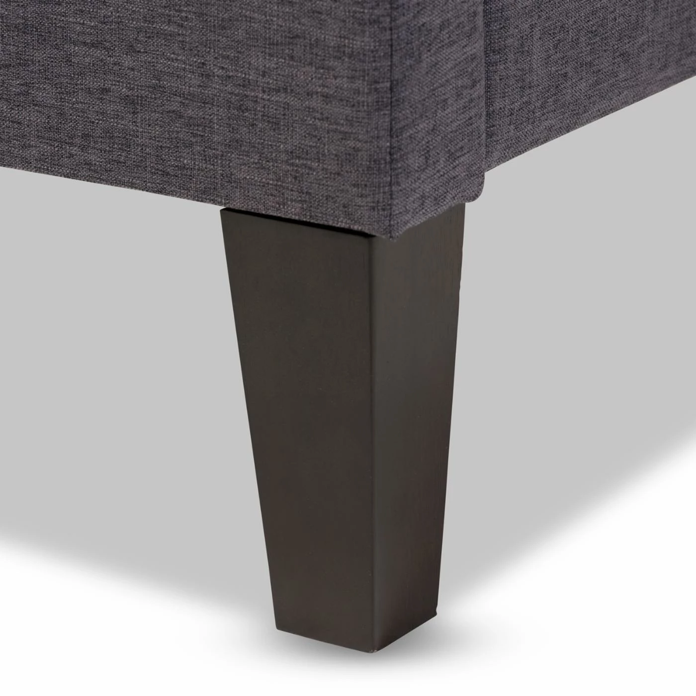 - Tapered wood legs in black finish