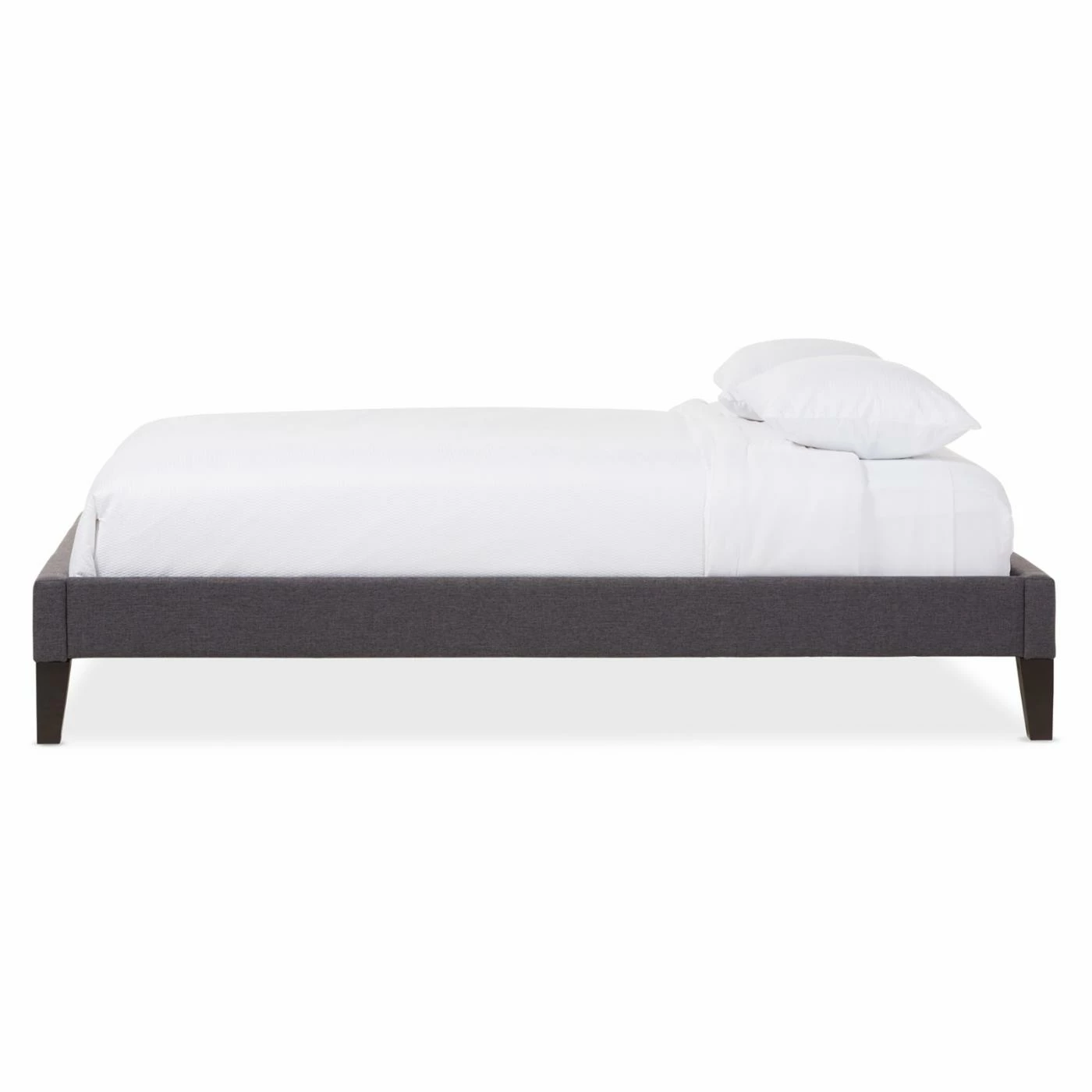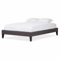 If you prefer a clean look, you’ll love the HN Home Renton Transitional Fabric Upholstered Platform Bed with Tapered Legs. This platform bed features a low profile design and is fully upholstered in fabric. It stands on tapered wood legs in black. The bed features a slat system that replaces a box springs or other foundation. Choose from available sizes.