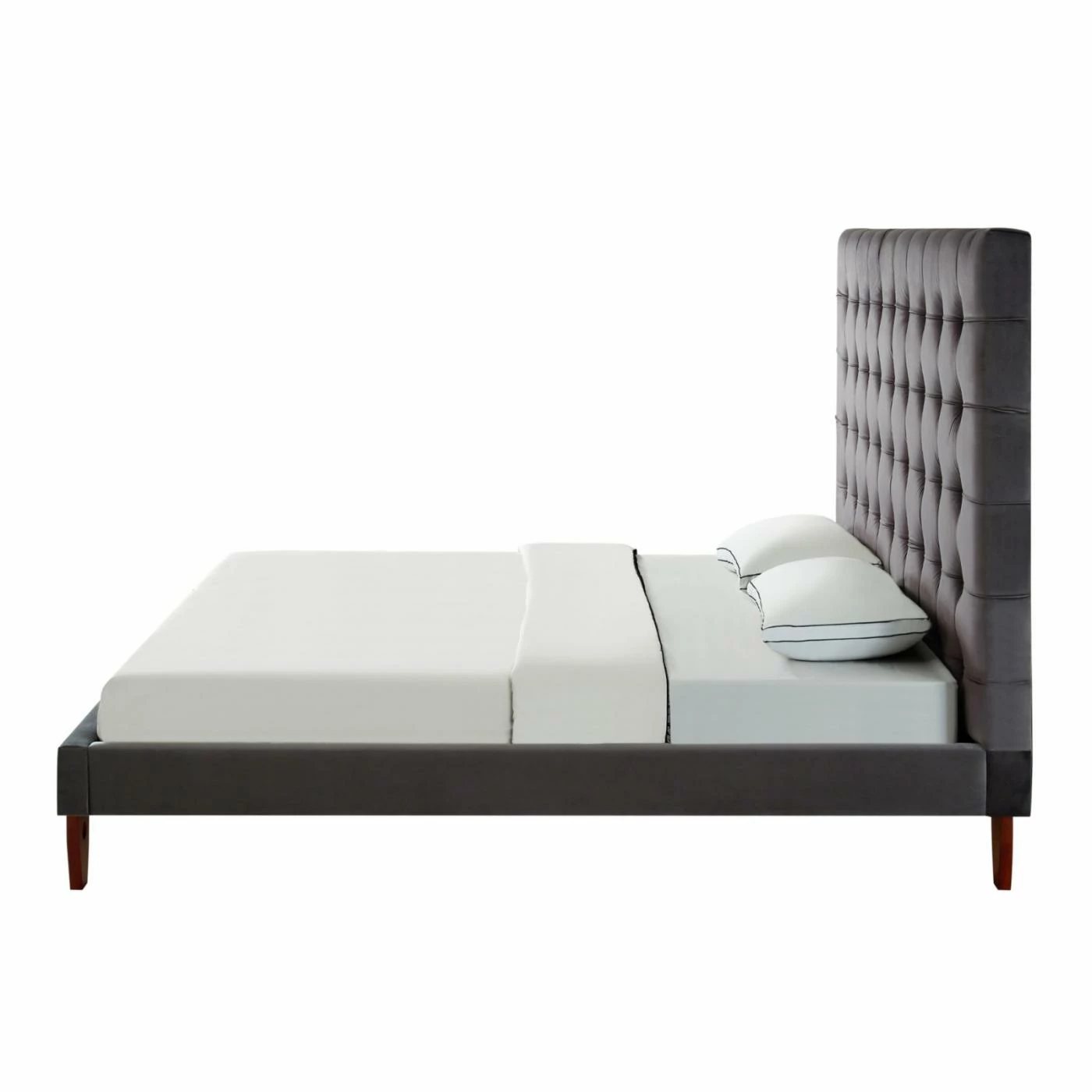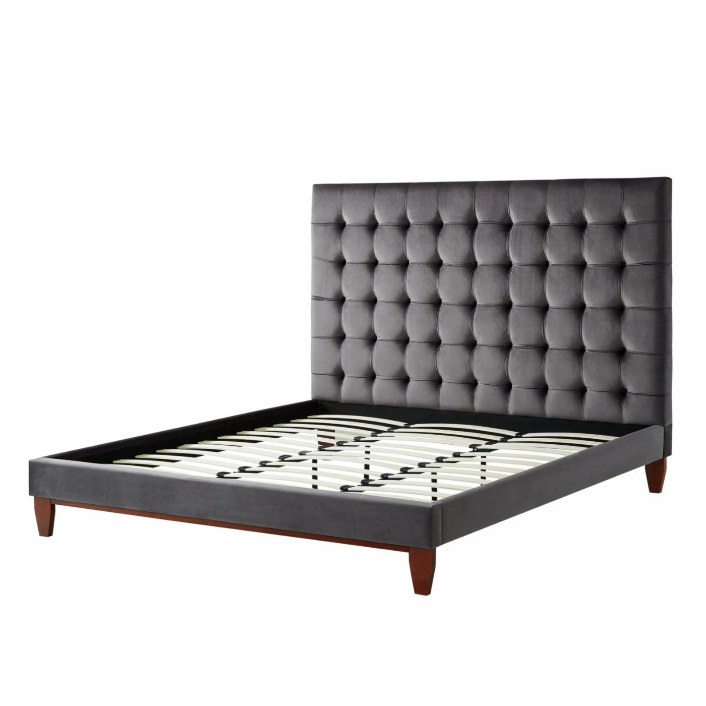 Elevate your bedroom design with the addition of the Inspired Home Scott Velvet Upholstered Platform Bed. This platform bed offers a durable wood framework enhanced with high-density foam and velvet upholstery. The headboard is button tufted for additional comfort and dimension. Assembly required.