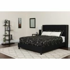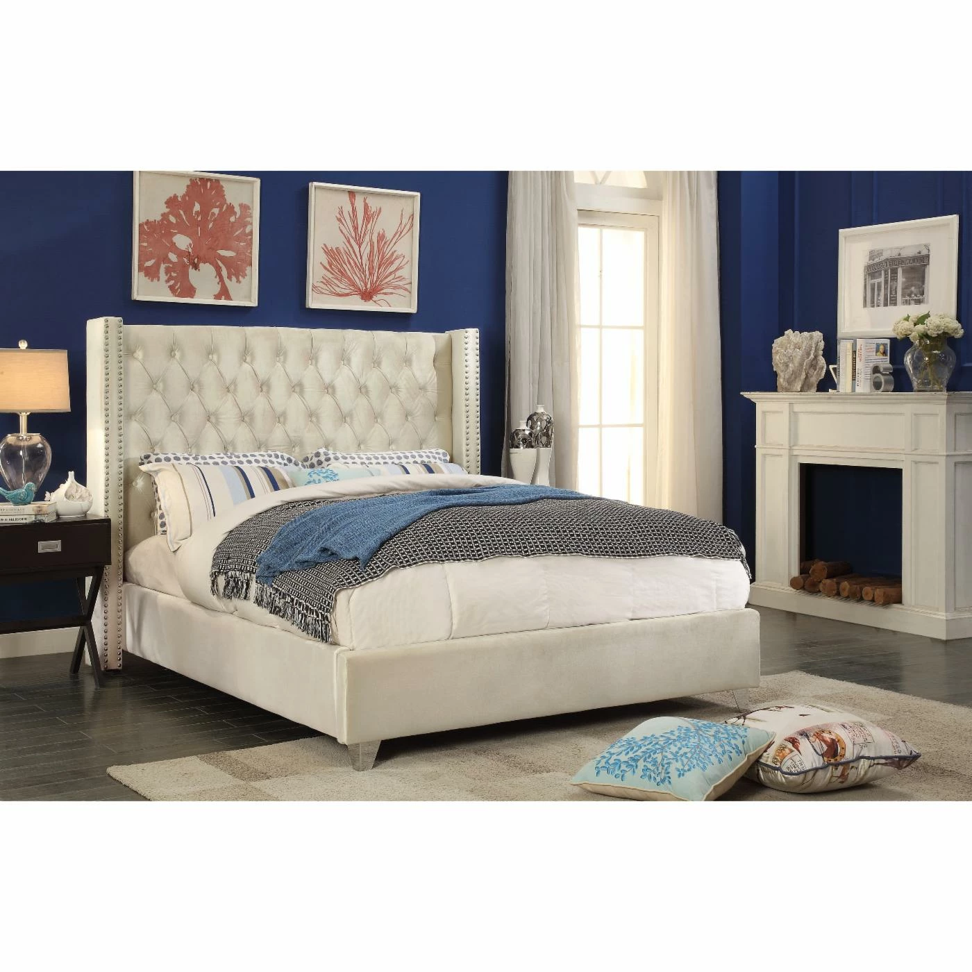 For a sumptuous bedroom, choose the Meridian Furniture Inc Aiden Velvet Platform Bed as your centerpiece. Its stately shelter style headboard is upholstered in sumptuous velvet, richly button tufted, and accented by double rows of nail head trim. Customize the look of this bed by choosing from available velvet colors. Its platform design replaces the need for a box spring or foundation. This bed is offered in a choice of available sizes.