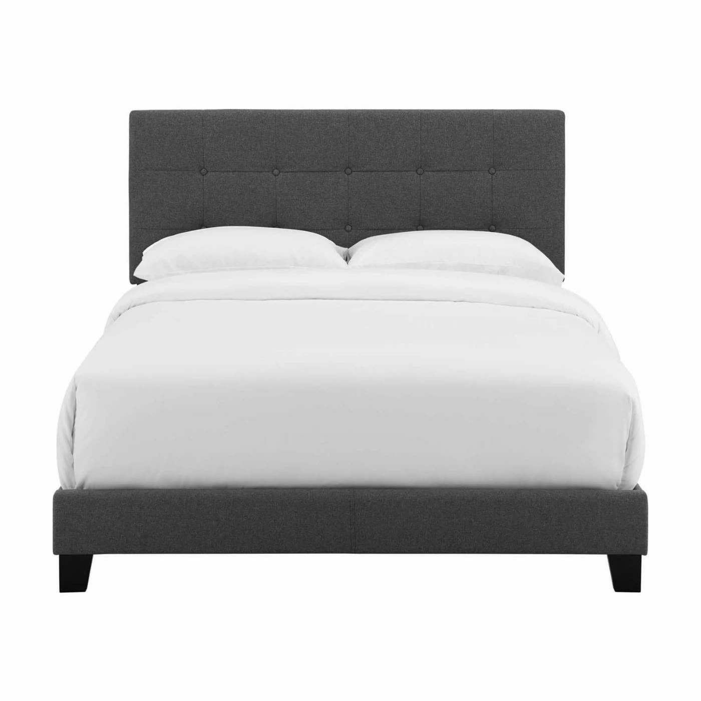 Cool, contemporary lines make the Modway Amira Upholstered Panel Bed an exciting way to reinvent your bedroom for a more modern approach. Its frame is built from tough, long-lasting wood and is stuffed with layers of dense, soft foam. Velvet polyester fabric upholsters the frame, accented with square button-tufting on the headboard’s face. Make the bed frame your own by choosing from one of the available size and color options.