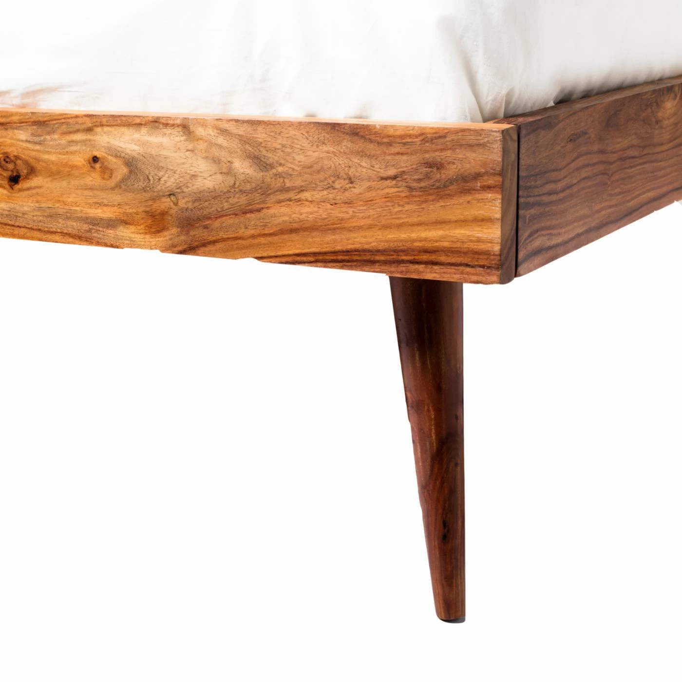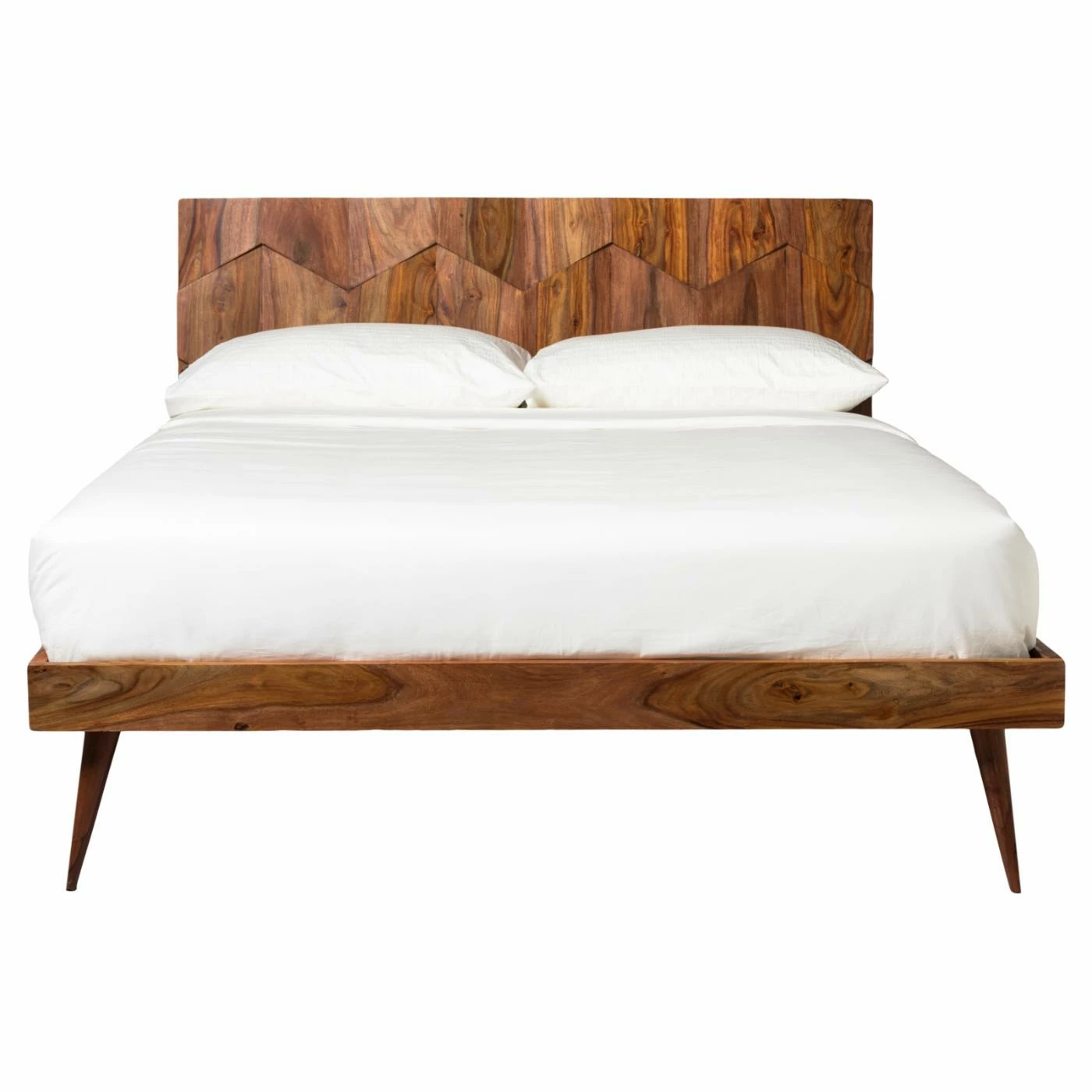 Add a dash of mid-century modern style to your sleep space with the Moes Home Collection O2 Platform Bed, crafted from solid sheesham wood. This gorgeous platform bed is elevated by a decorative headboard in a textural, zig-zag design. The natural finish lends it exceptional versatility, and tapered legs add to its contemporary vibe.